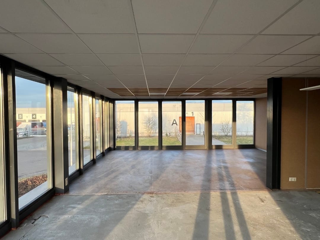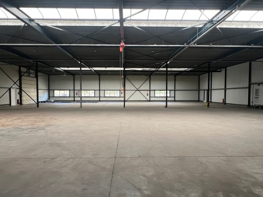 - Lichtstraten, overheaddeuren, krachtstroom, betonvloer, toilet, pantry en inbouwarmaturen