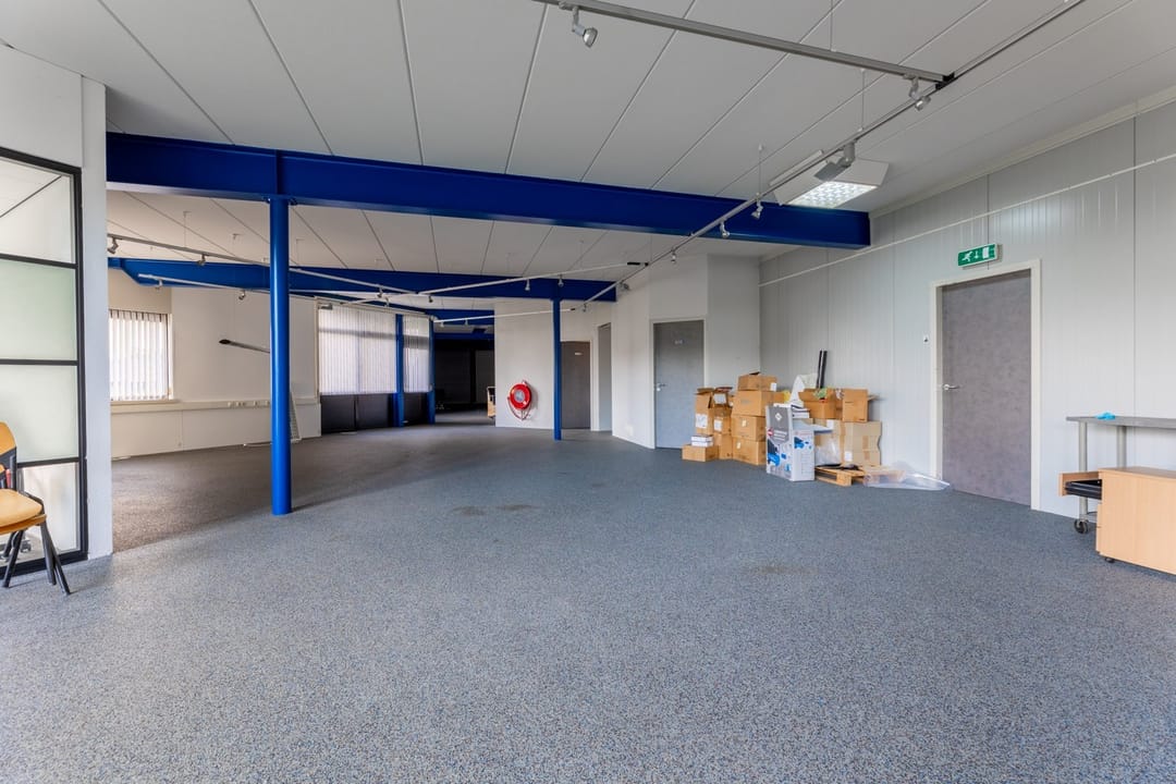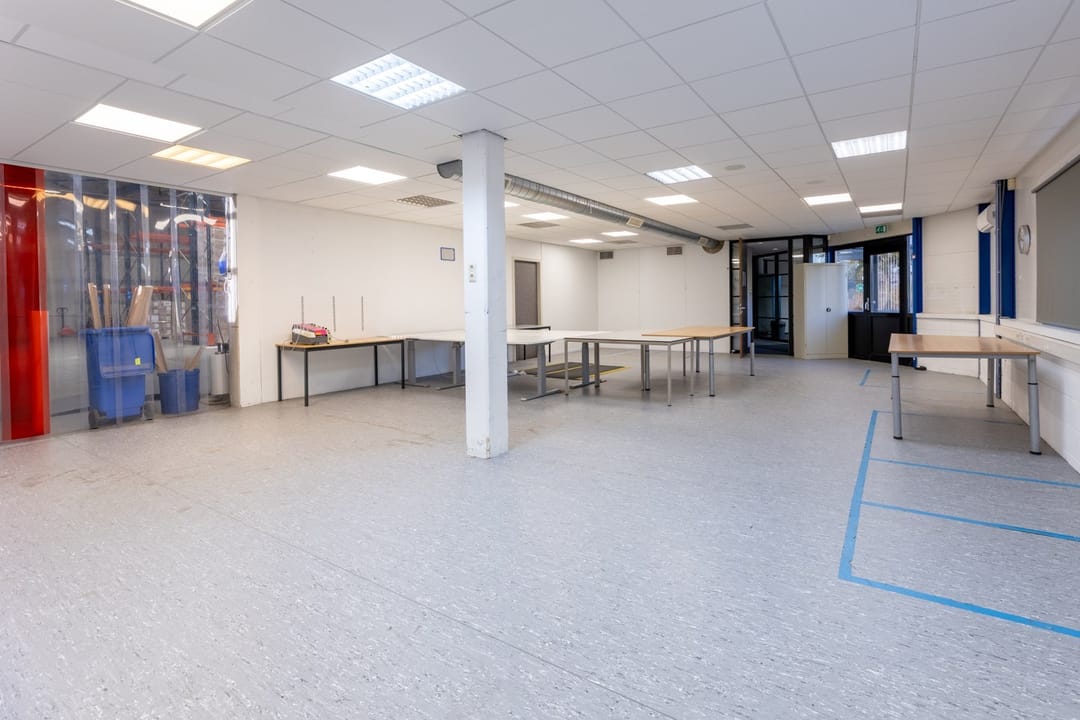 Begane grond: Kantoorruimte met bedrijfshal van circa 1.500 m2 voorzien van 4 overheaddeuren. De bedrijfsruimte is eventueel op te splitsen is in afzonderlijke bedrijfsruimtes met kantoor. Op het buitenterrein aan de achterzijde van het pand bevindt zich een loadingdock.