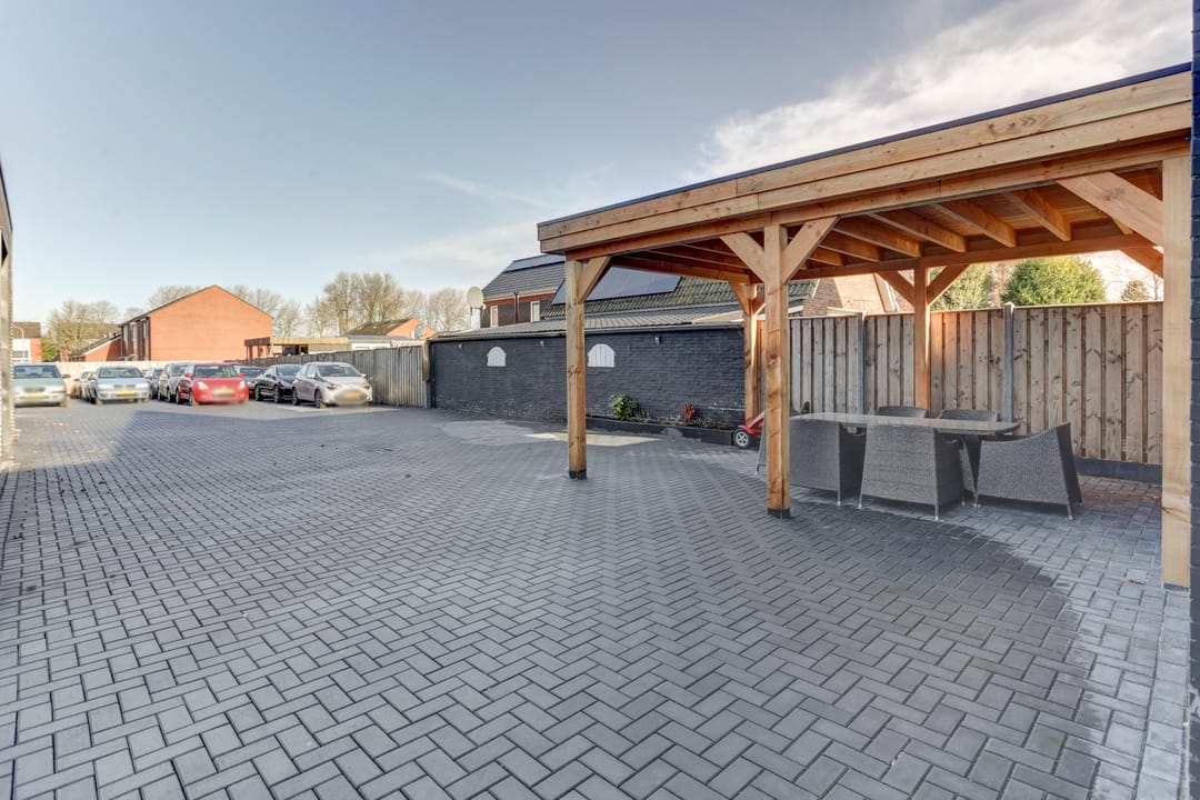 Achter de werkplaats bevindt zich een overkapping ter grootte van circa 25 m².