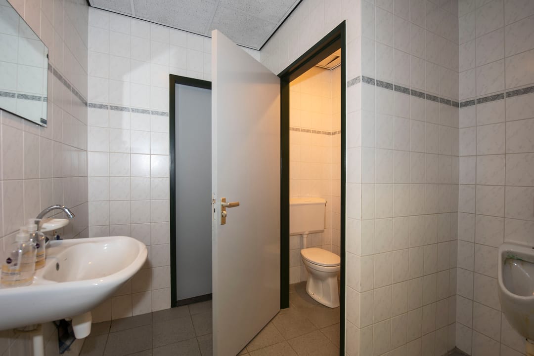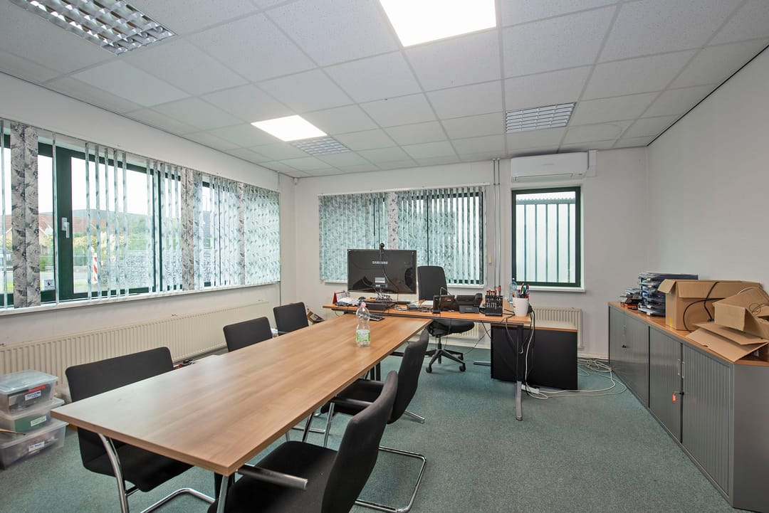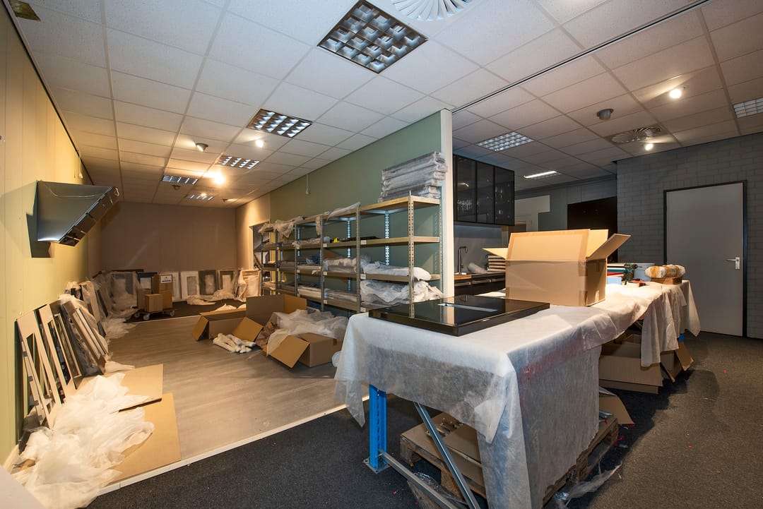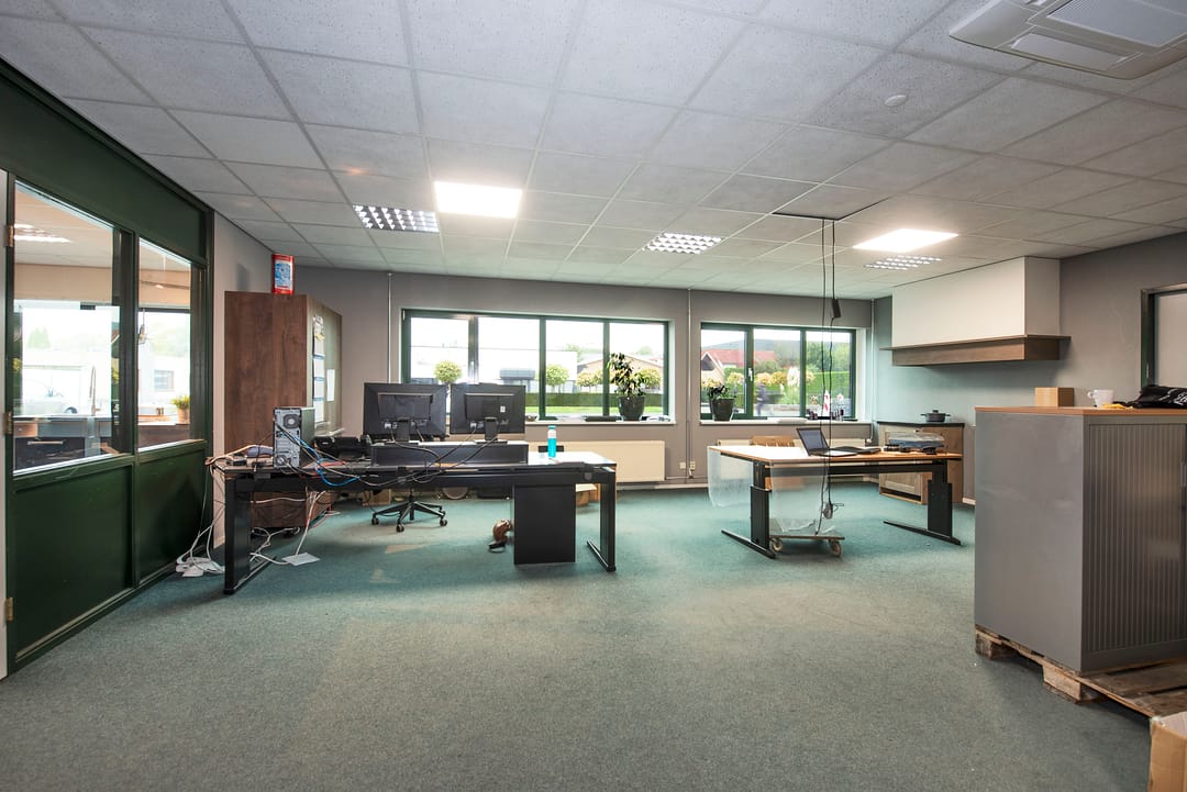 - Airconditioning, lichtstraten, overheaddeuren, krachtstroom, betonvloer, toilet, pantry, inbouwarmaturen en te openen ramen