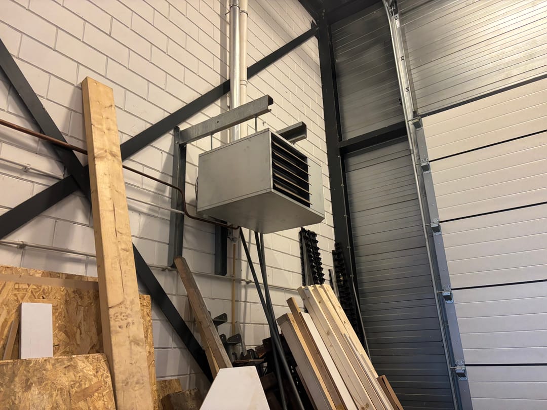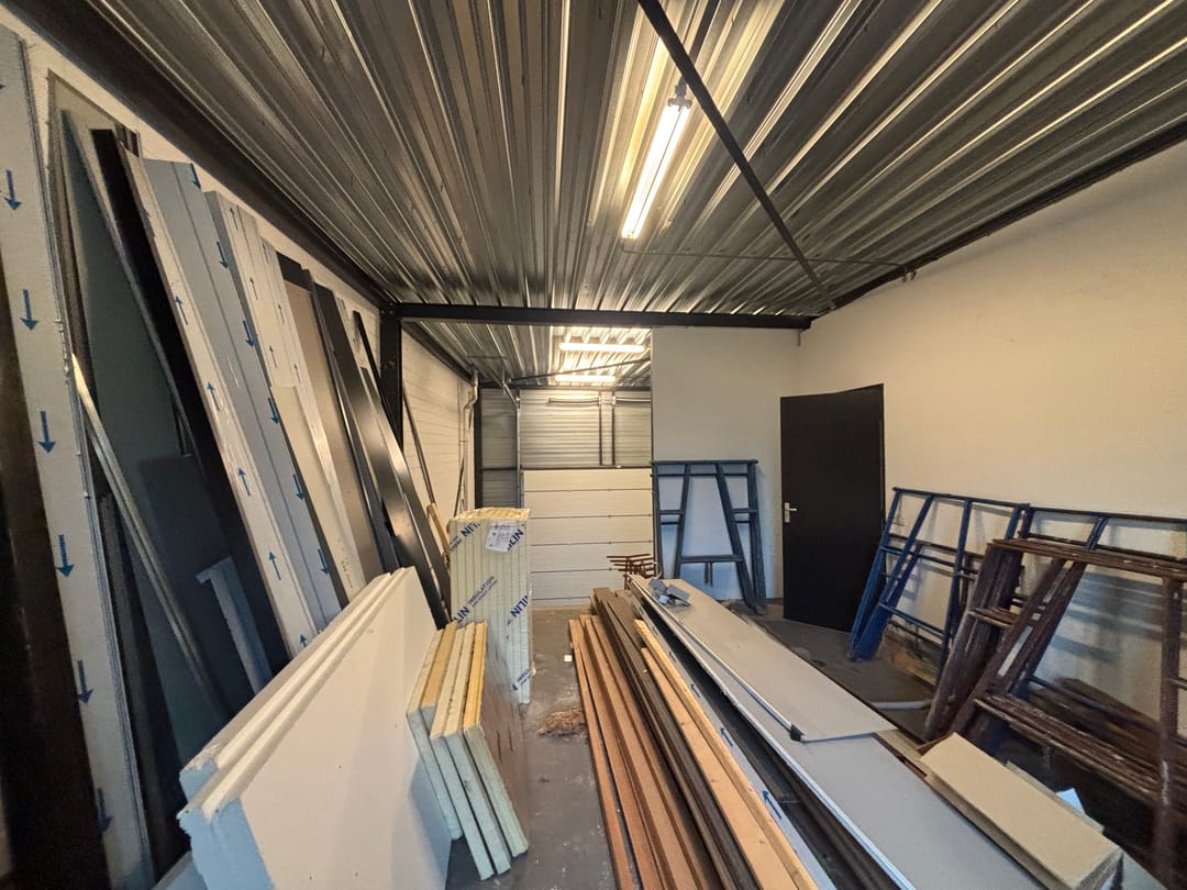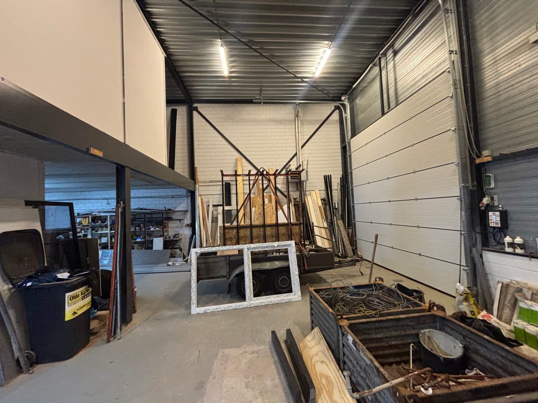 - Overheaddeuren, krachtstroom, betonvloer, heater, toilet, pantry, inbouwarmaturen en te openen ramen