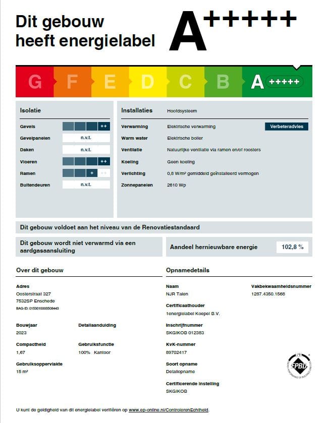 Het geheel is gerealiseerd in 2023, uitstekend geïsoleerd en voorzien van zonnepanelen waardoor het beschikt over energielabel A+++++.