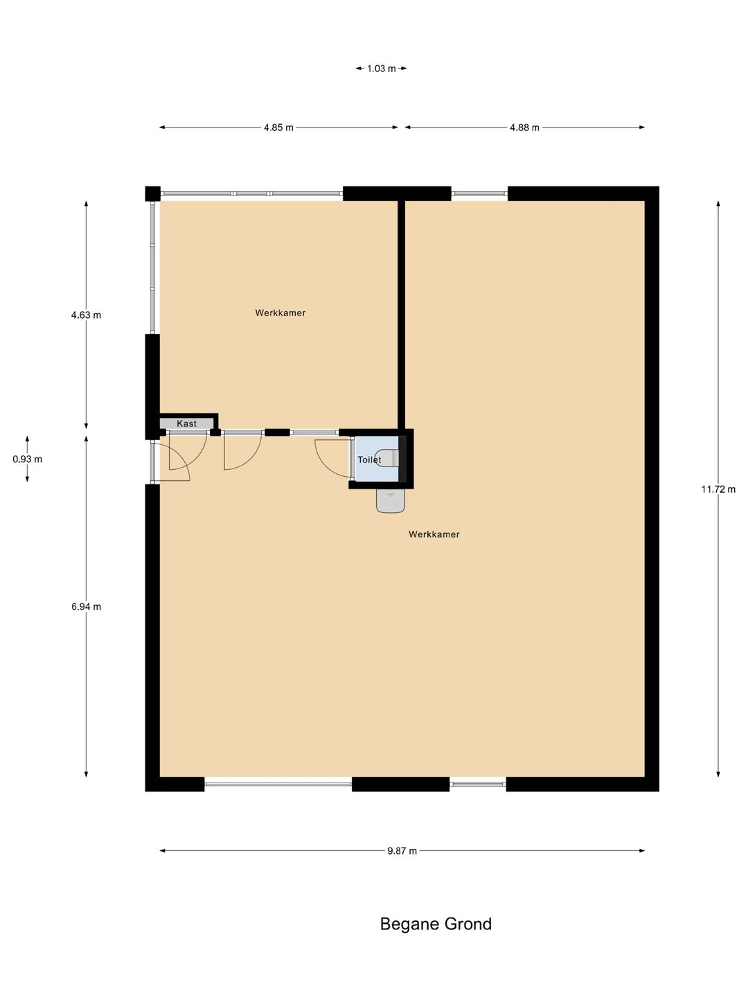 - Overheaddeuren, krachtstroom, betonvloer, toilet en pantry