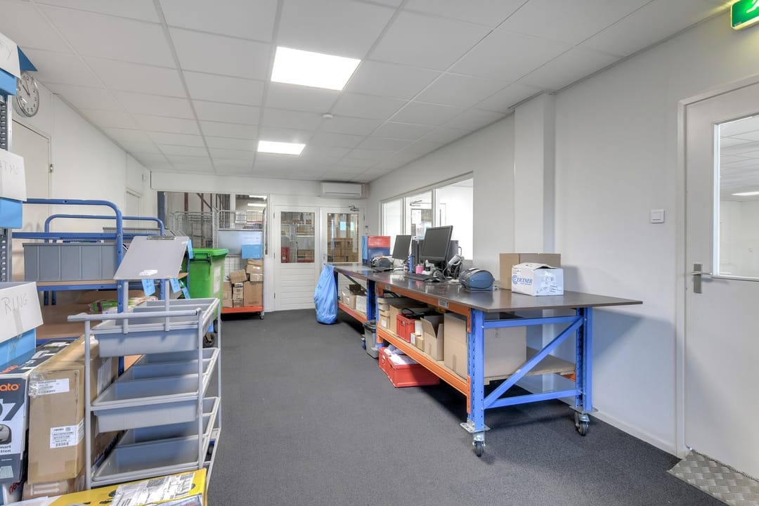 Het geheel bestaat uit een tweetal bedrijfsruimten, welke met elkaar in verbinding staan middels brandwerende deuren, een expeditieruimte, kantoren, werkplaats, kantineruimte en sanitaire voorzieningen.