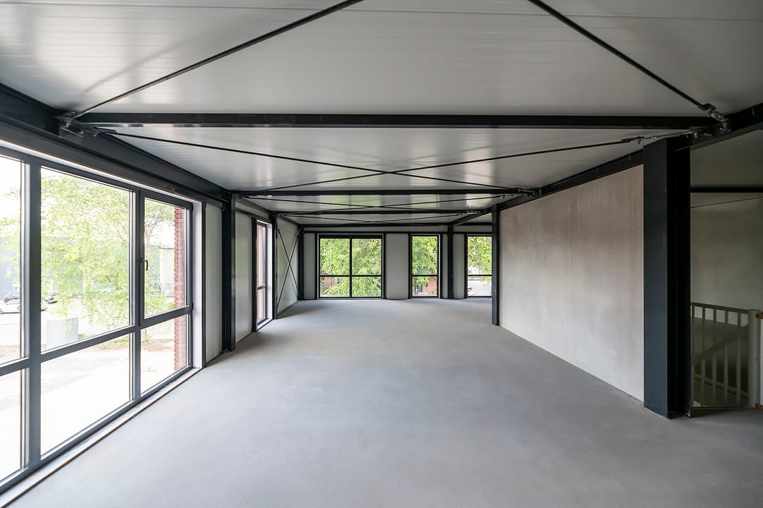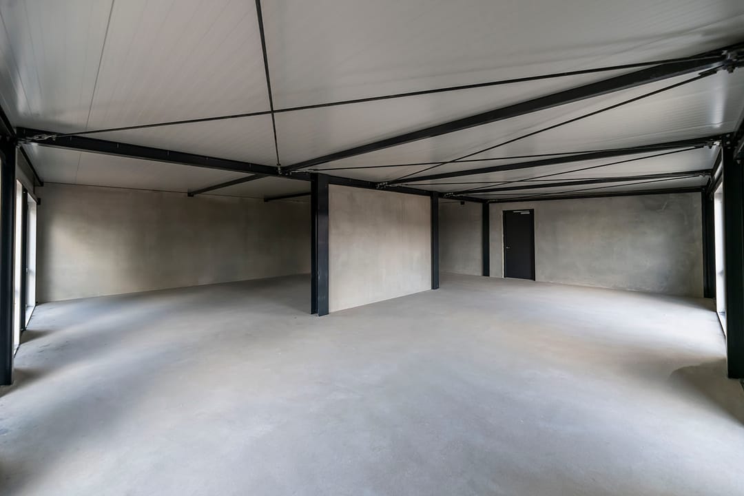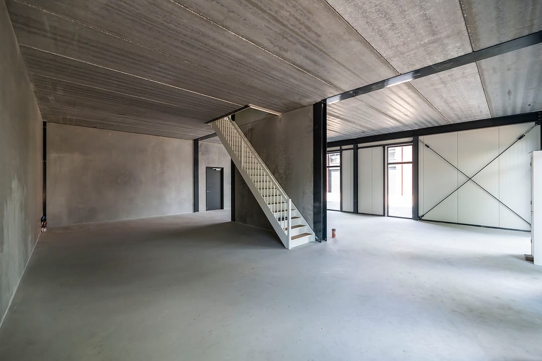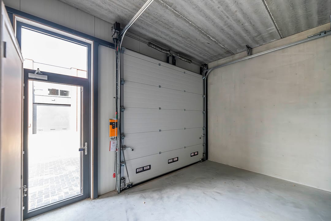 - Overheaddeuren, krachtstroom, betonvloer en te openen ramen