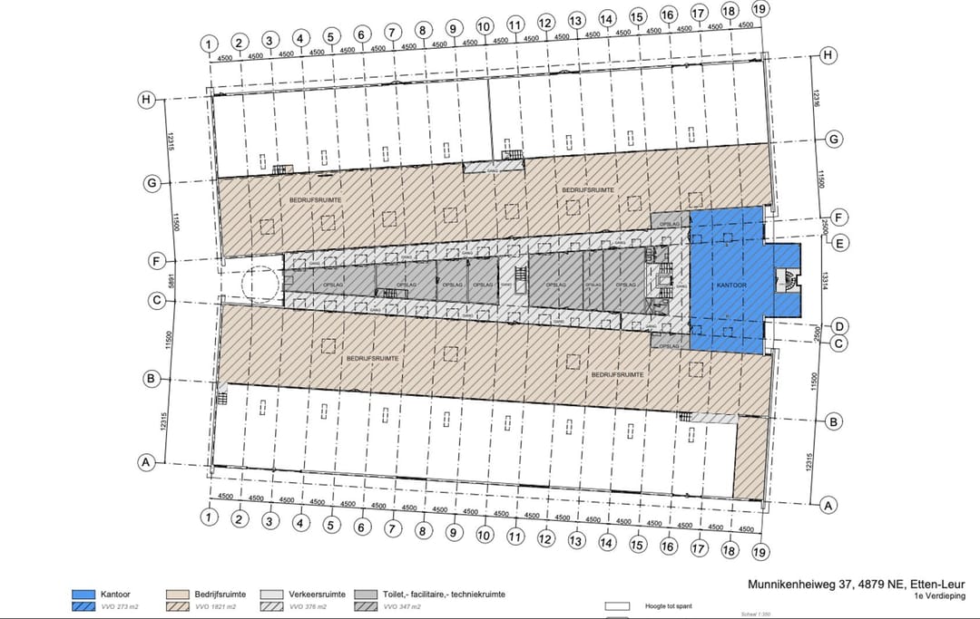 Optie 2: enkel de mezzanine, omvattende circa 1.821 m2.