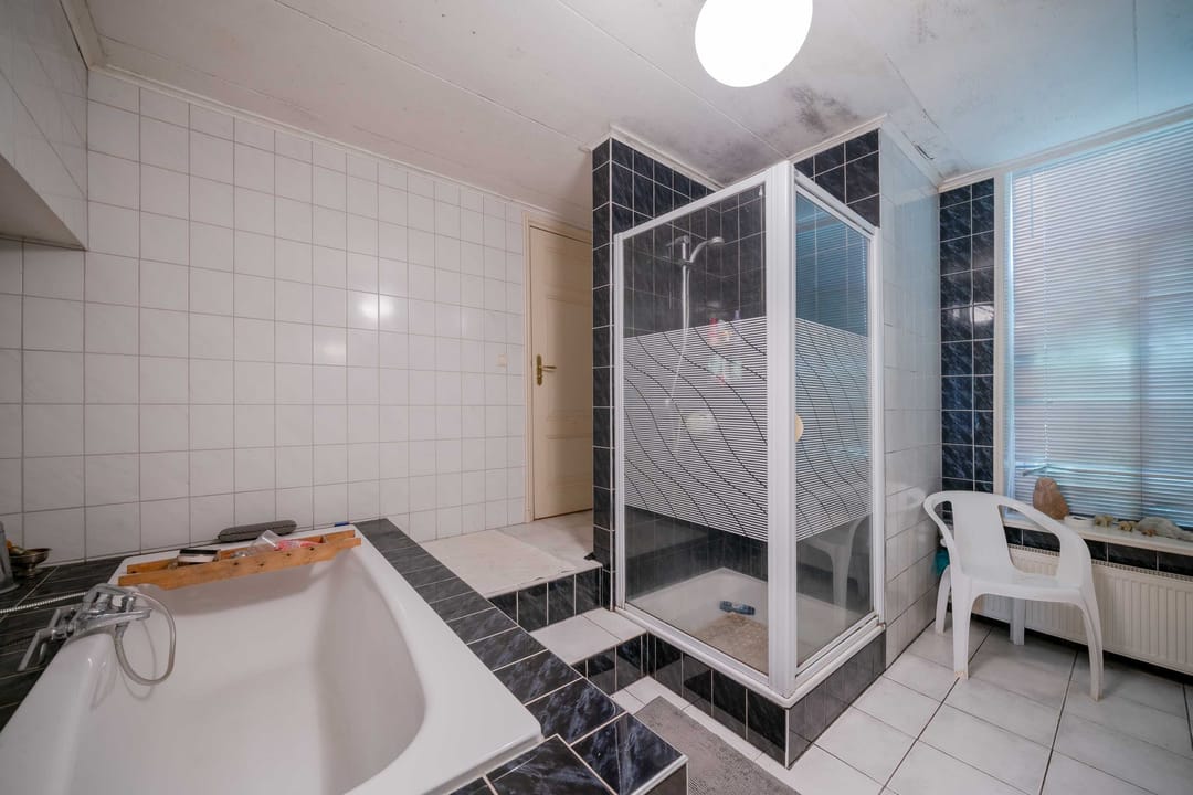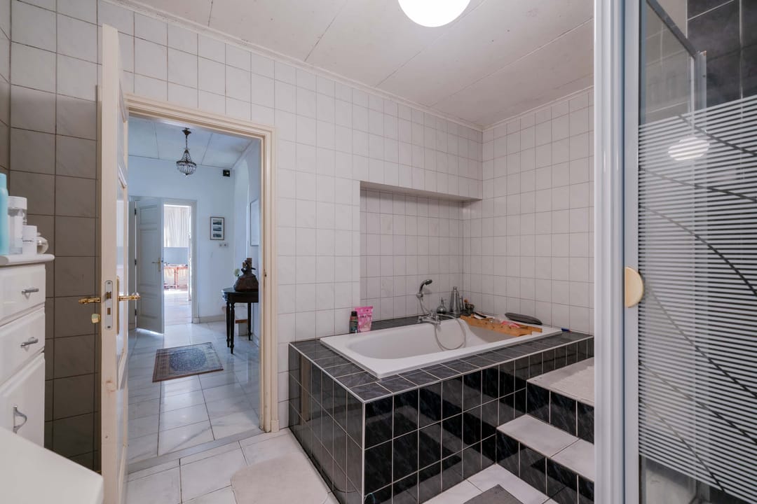 Badkamer: Aangesloten aan de slaapkamer, en vanuit de centrale gang, is een badkamer aanwezig met een ligbad, douchecabine en wasbak.