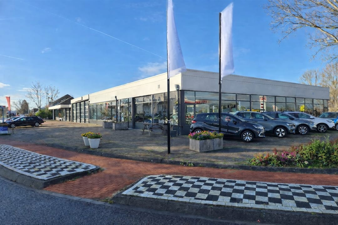 Ruim en volledig verhard buitenterrein aan de voorzijde en langs beide zijkanten van het gebouw. De linkerzijde is deels voorzien van hekwerk en een toegangspoort. Geschikt voor parkeren, opslag en presentatie.