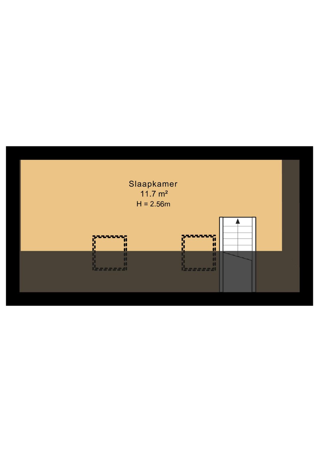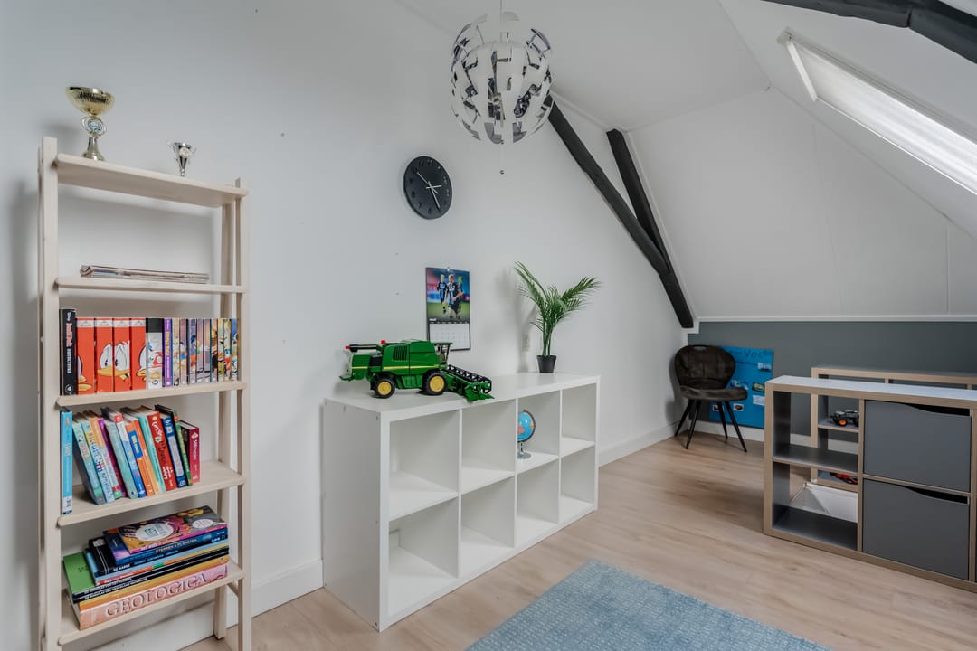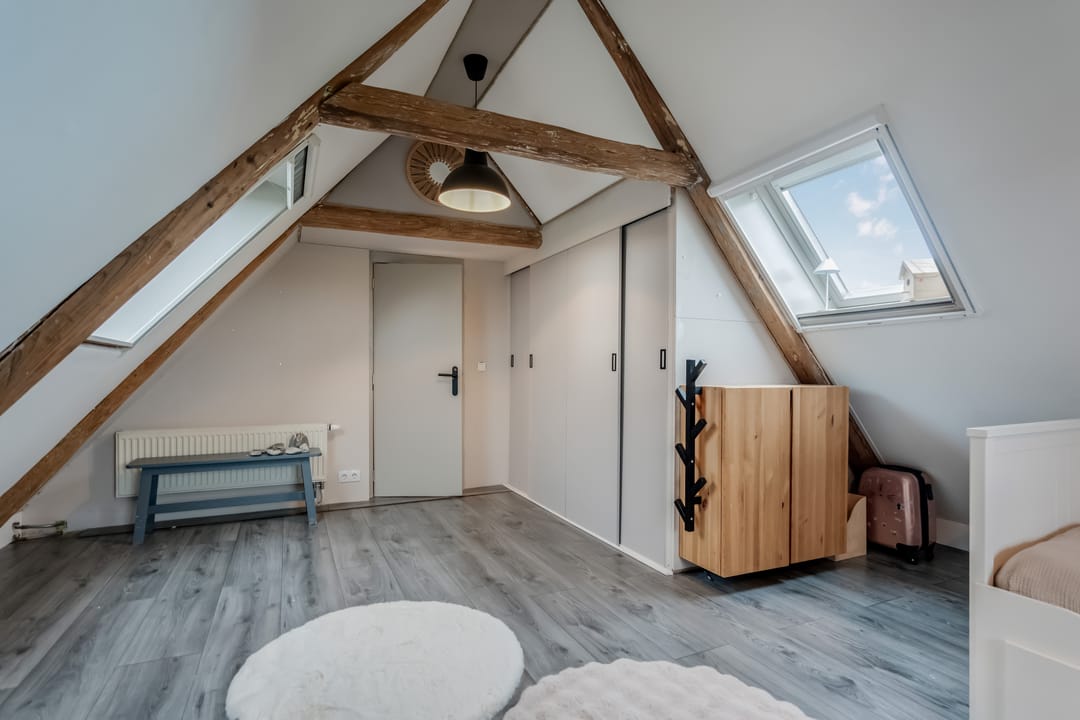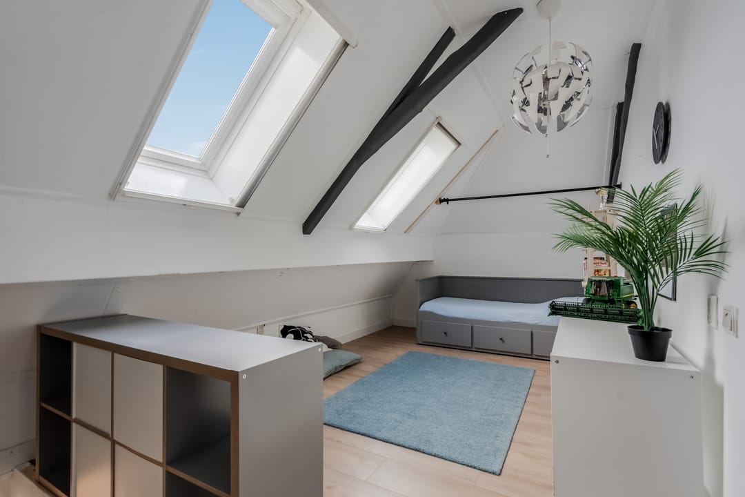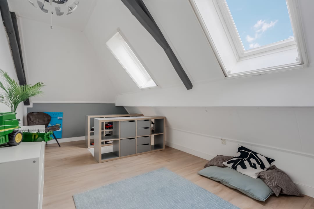 Tweede verdieping: middels vaste trap bereikbaar, hier bevind zich een grote vierde slaapkamer (ca.11.7m2) met twee dakramen.