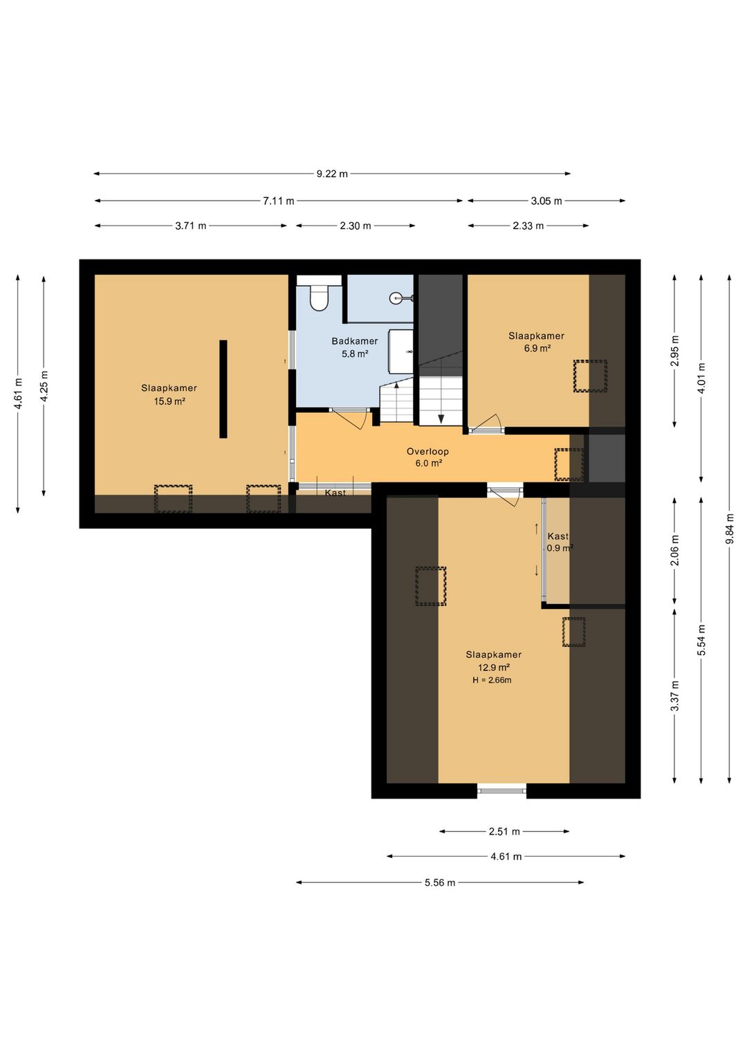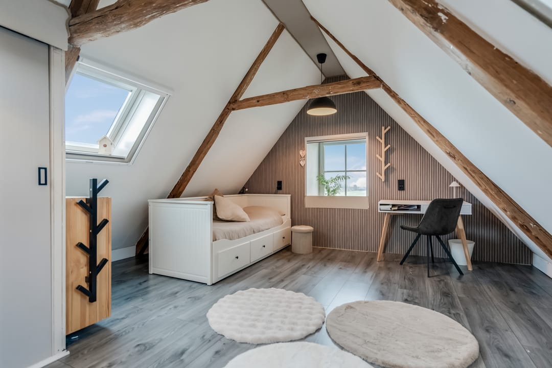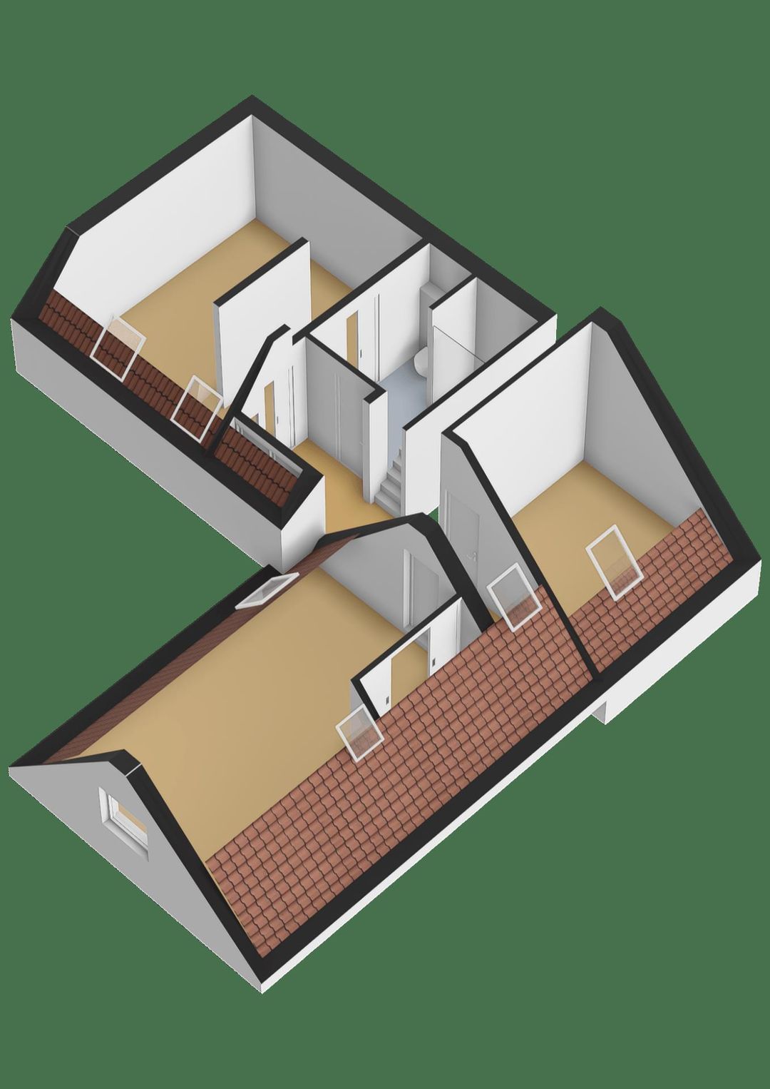 Tweede verdieping: middels vaste trap bereikbaar, hier bevind zich een grote vierde slaapkamer (ca.11.7m2) met twee dakramen.