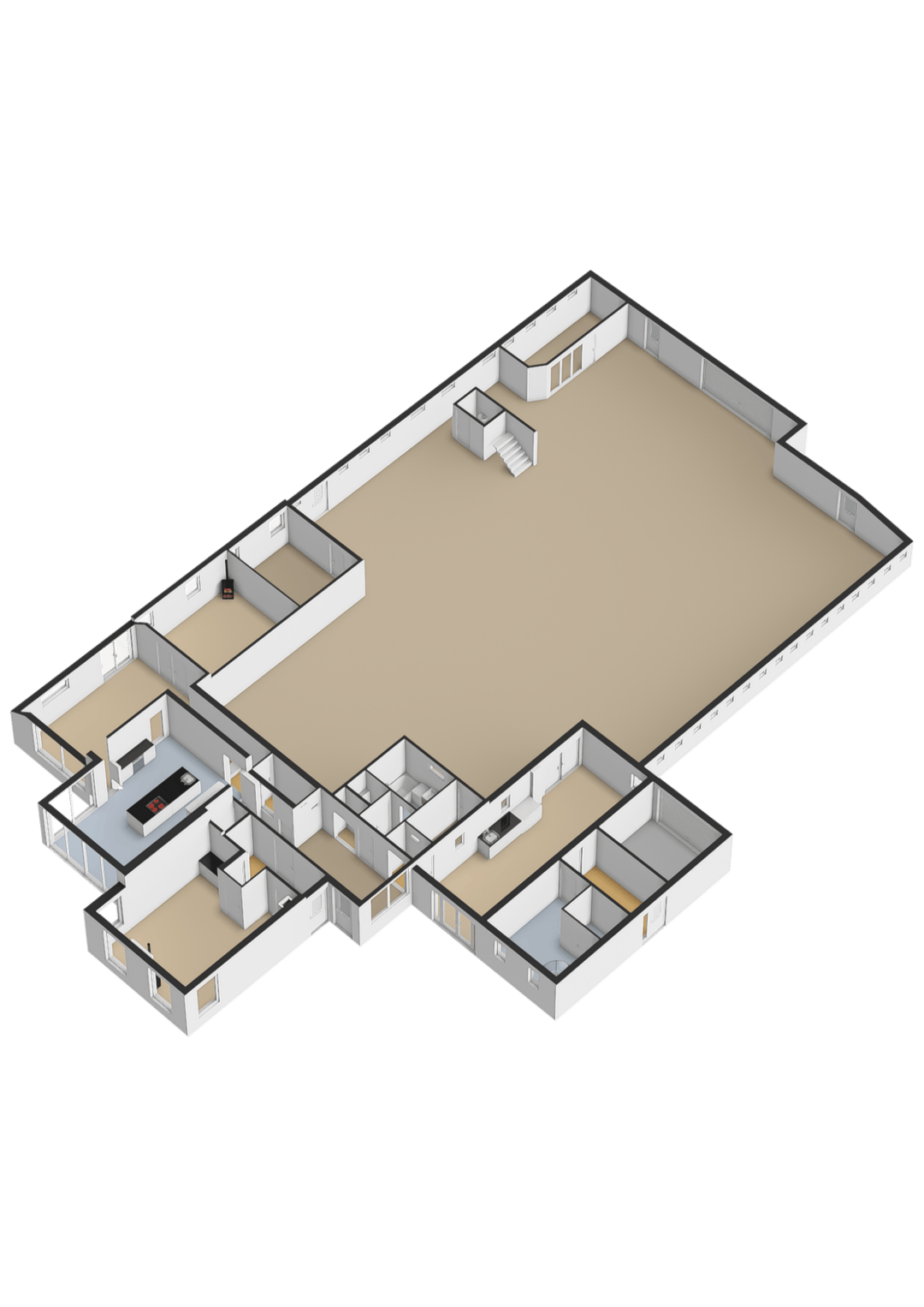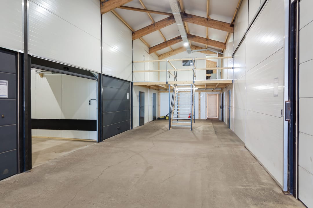 Grote loods: deze is verbouwd tot diverse opslagunits, die momenteel worden verhuurd via de bijbehorende website. Een goed lopende exploitatie met een stabiele inkomstenstroom en relatief weinig beheer. Op de verdieping aan de voorzijde bevindt zich een ruime kantoorruimte. Het terrein is voorzien van camerabewaking.