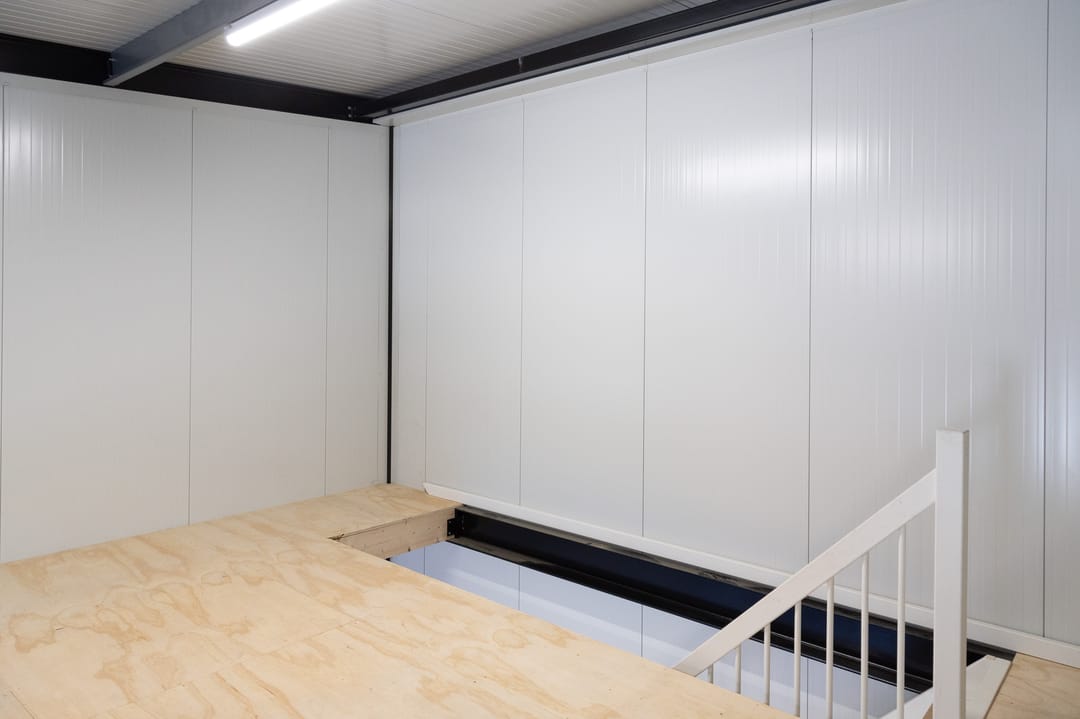 Op het bedrijventerrein "Kie" aan de buitenrand van de fraaie stad Franeker bieden wij TE HUUR aan deze in 2019 gebouwde, moderne bedrijfsunit (volledig geisoleerd) met een totale oppervlakte van totaal 78m2 waarvan 51m2 op de begane grond (950cmx540cm) en een zolder van 27m2 (540cmx503cm). De totale hoogte is 575cm. Ideaal voor opslag voor ZZP'ers of een particulier. De unit is toegankelijk via een grote gesegmenteerde overheaddeur (handbediend) + loopdeur van totaal 350cm breed en 400cm hoogte. De gevlinderde betonvlier is 180mm dik en vloeistofdicht afgewerkt.