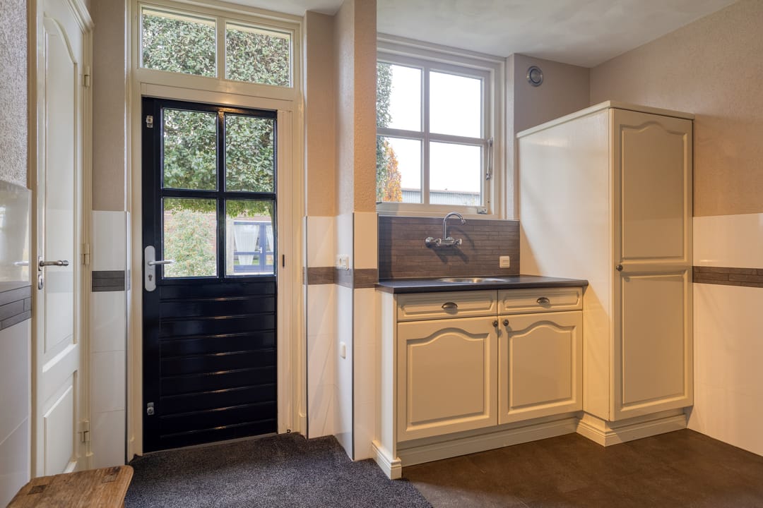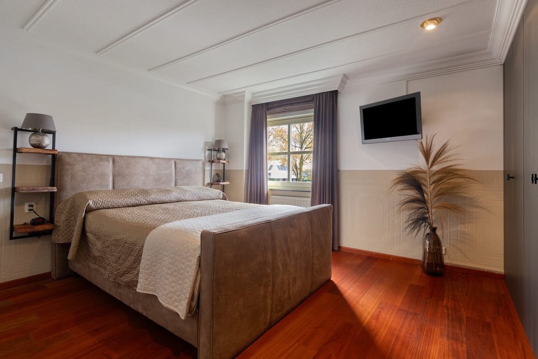- Eerste verdieping: de eerste verdieping biedt drie ruime slaapkamers, waarvan twee zijn voorzien van praktische, ingebouwde kasten die de ruimte optimaal benutten. De recent volledig gerenoveerde badkamer is modern ingericht en voorzien van een ligbad, inloopdouche, dubbele wastafel en toilet. Daarnaast bevindt zich op deze verdieping een royaal kantoor - een ideale plek voor administratieve werkzaamheden, zeker in combinatie met een bedrijfswoning.