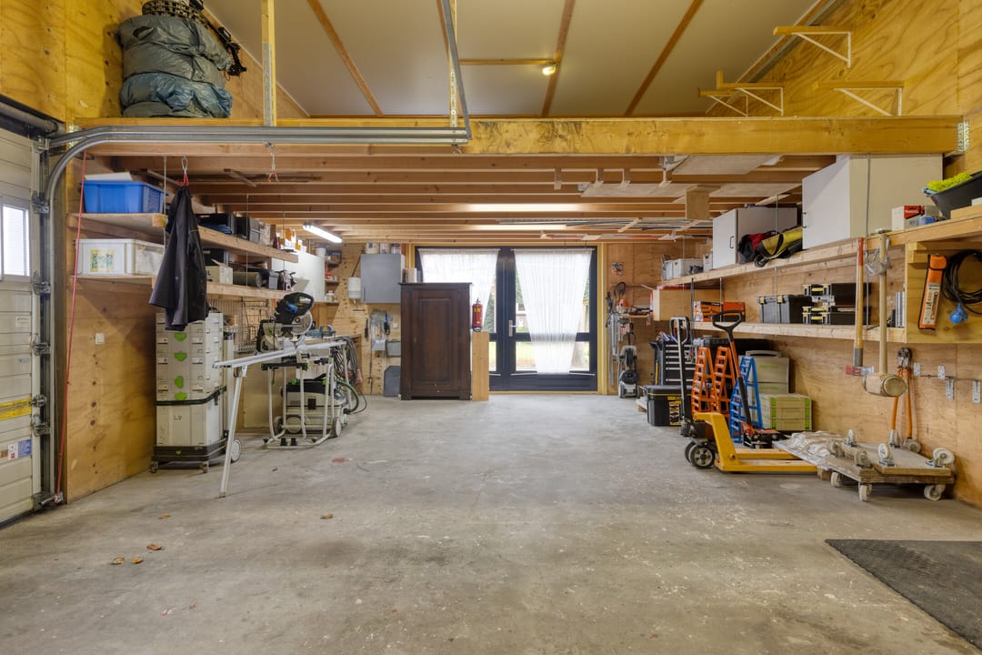 De bedrijfsruimte/opslagruimte en is voorzien van een praktische entresolvloer die extra bergruimte biedt. De ruimte is toegankelijk via een handbedienbare overheaddeur van circa 3 x 3 meter. Dankzij de indeling en hoogte is de bedrijfsruimte uitermate geschikt voor opslag en lichte werkzaamheden.