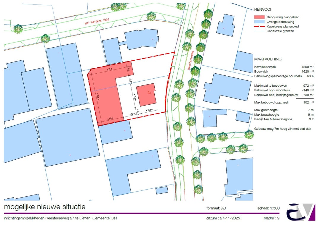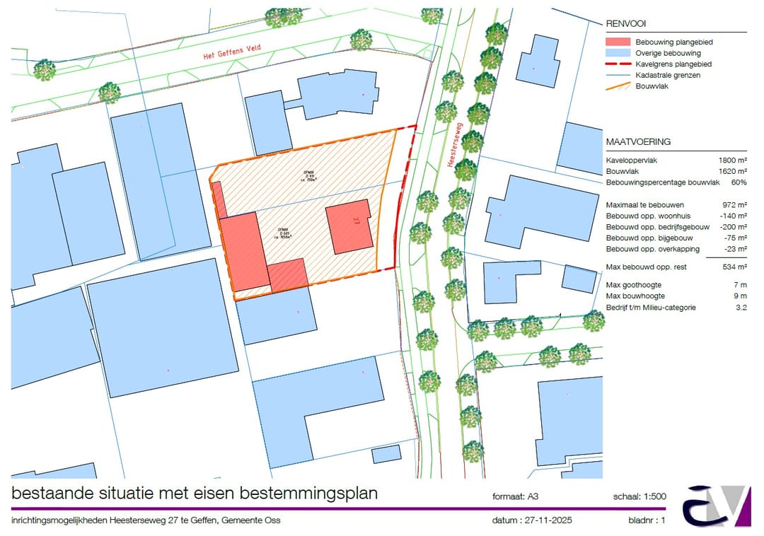 Het object is gelegen in het bestemmingsplan ‘Kom Geffen – 2016’ en valt binnen de bestemming ‘Bedrijf-1’ met functieaanduiding ‘bedrijf tot en met categorie 3.2’ en ‘bedrijfswoning’. Het bestemmingsplan staat zowel de bedrijfsactiviteiten als bewoning toe en hanteert een maximaal bebouwingspercentage van 60% binnen het bouwvlak. Een kopie van het bestemmingsplan is op aanvraag verkrijgbaar.