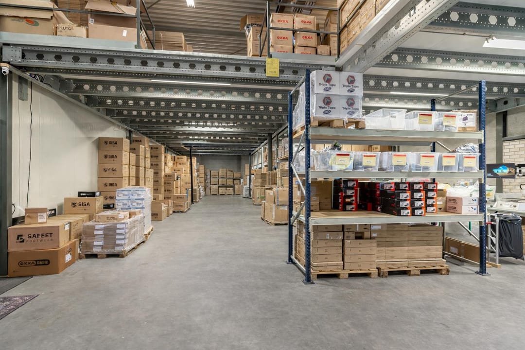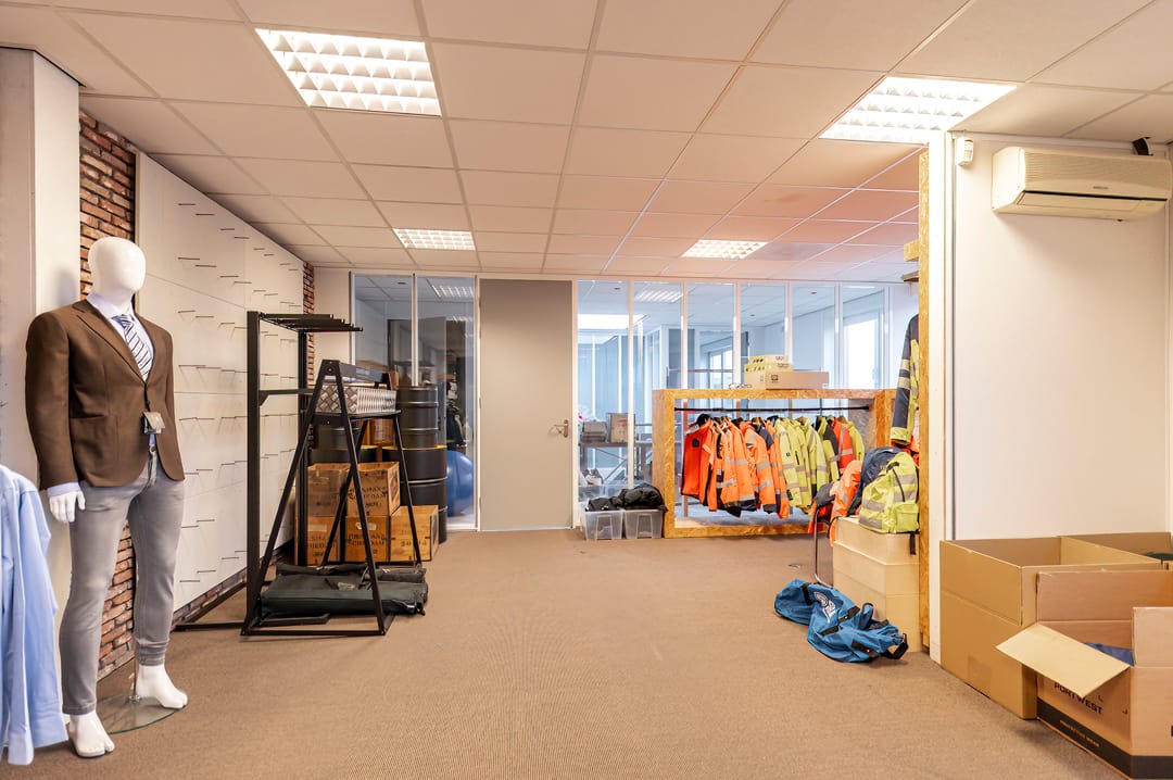 De bedrijfsruimte is vrijwel volledig voorzien van verdiepingsvloer