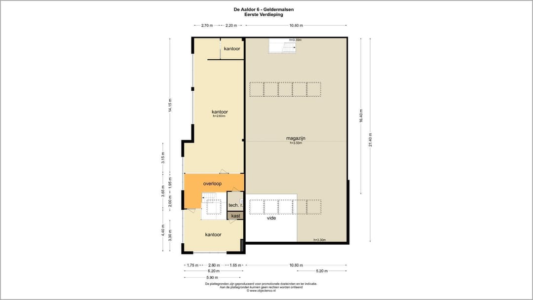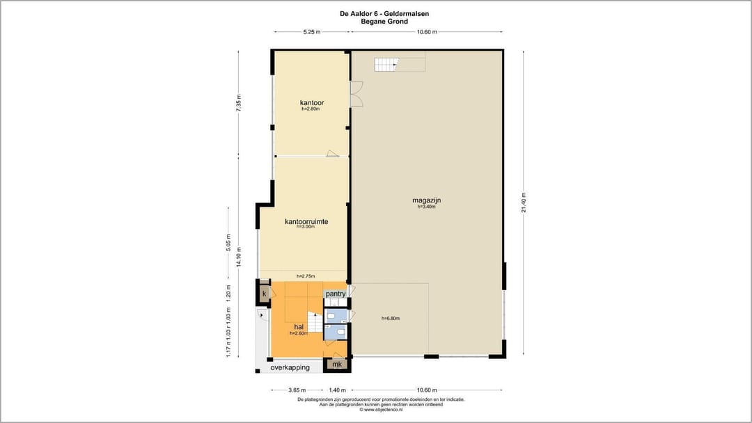 Vrije hoogte ca. 6,48 meter (verdiepingsvloer buiten beschouwing)