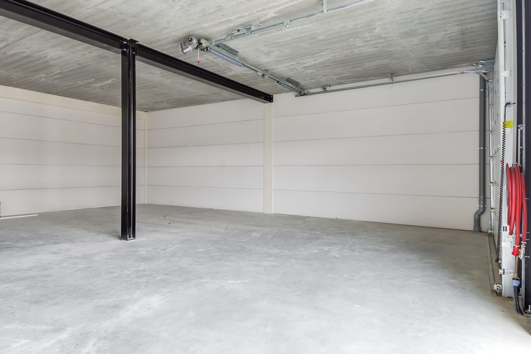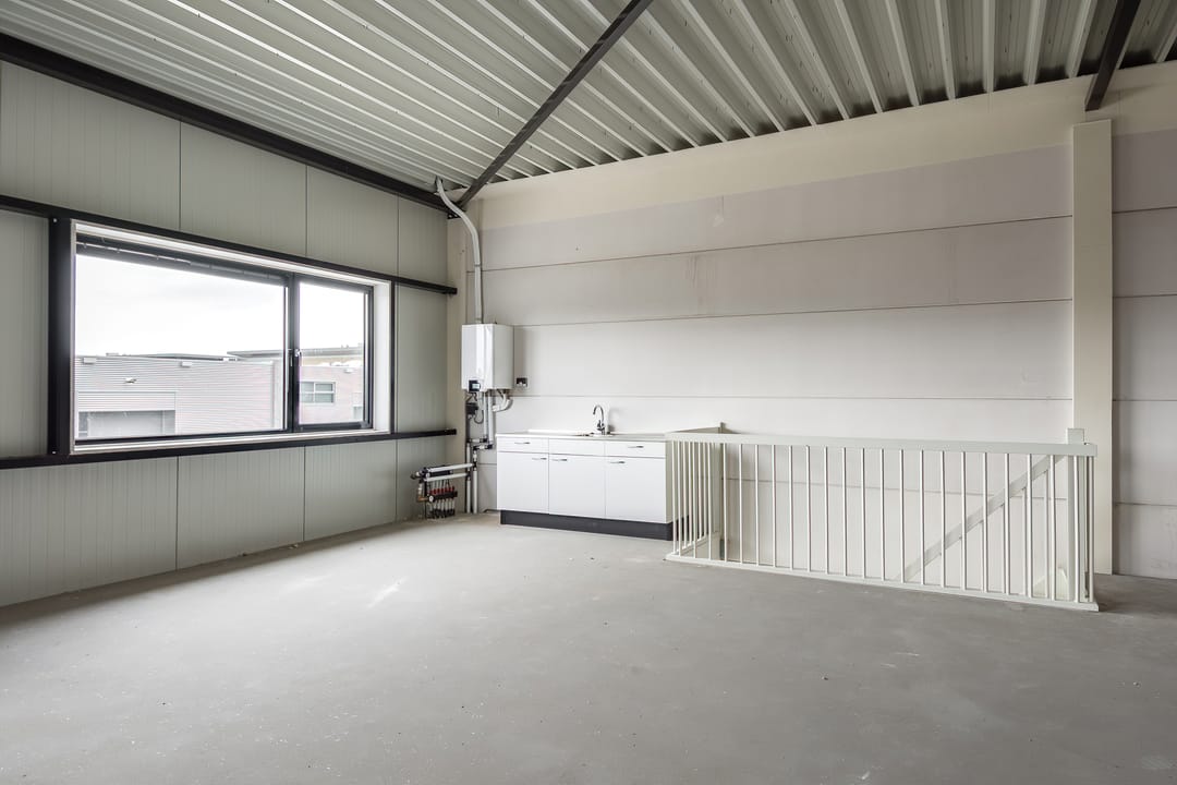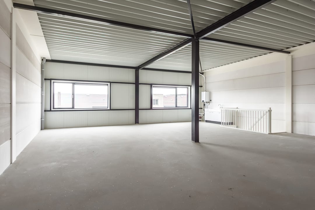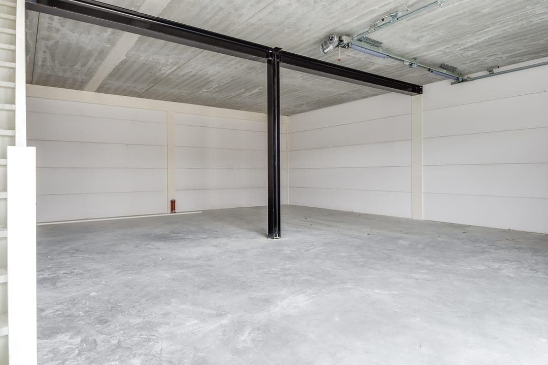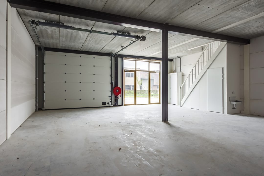 - Overheaddeuren, betonvloer, toilet, pantry en te openen ramen
