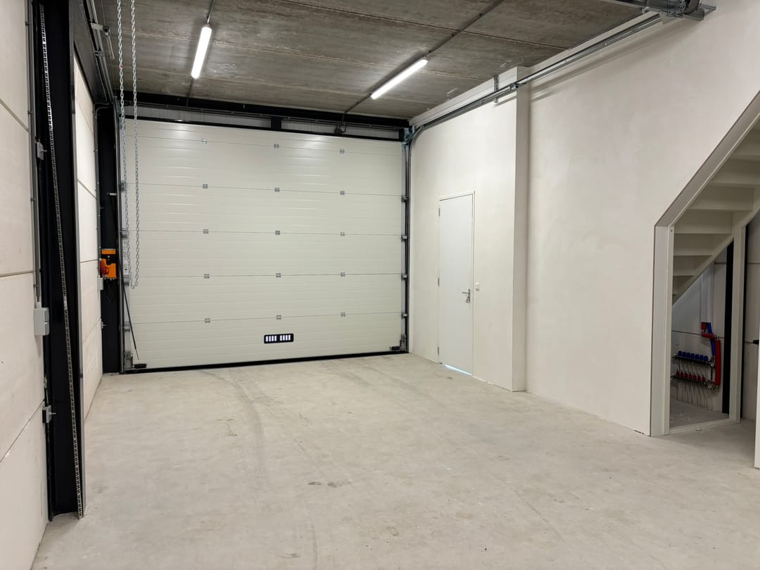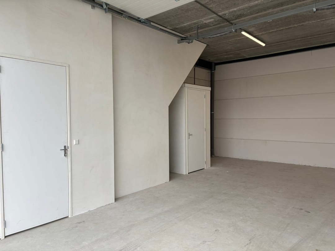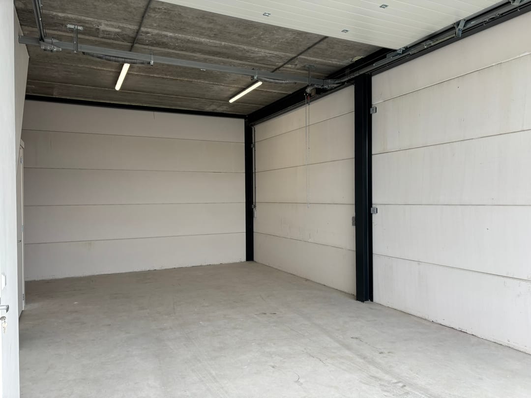 - Overheaddeuren, betonvloer, toilet, inbouwarmaturen en te openen ramen