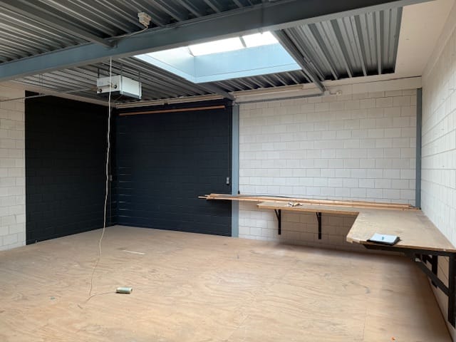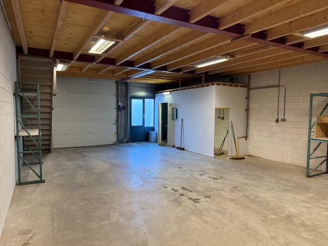- De bedrijfsruimte is volledig afgewerkt en uitgevoerd met een grote overheaddeur.