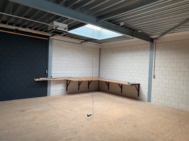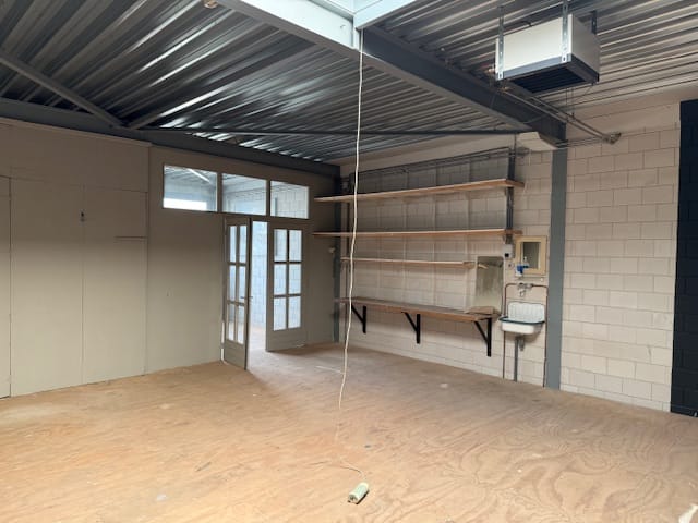 - Lichtstraten, overheaddeuren, krachtstroom, betonvloer, toilet, pantry en inbouwarmaturen