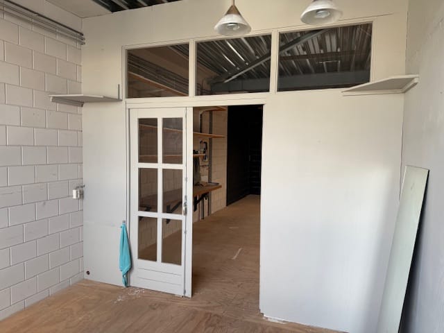 - werk/opslagruimte opgedeeld in 3 ruimtes;