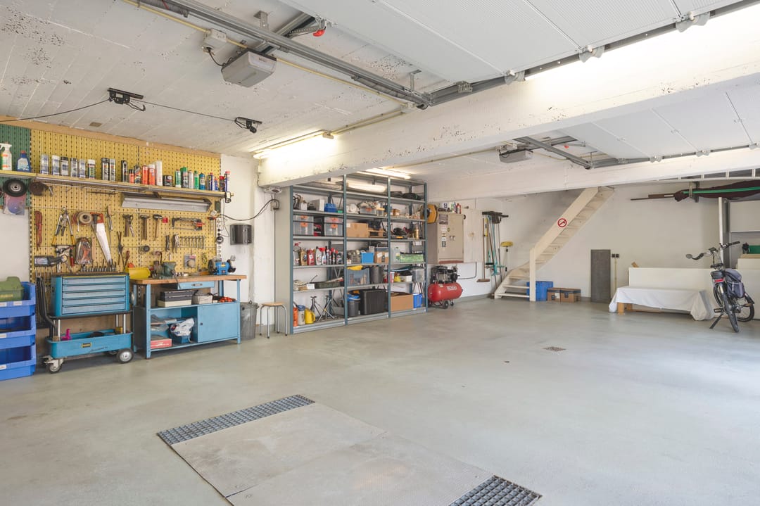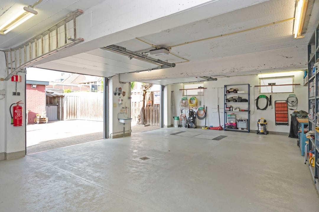• De unieke vrijstaande garage / multifunctionele ruimte (groter als menig huis) heeft een grondoppervlakte van ca. 67.50 m2. Via 2 elektrische Crawford rolpoorten parkeer je hier gemakkelijk 2 auto’s of bestelbussen in. Daarnaast blijft er nog genoeg opslag (o.a. fietsen, aanhangwagen, rekken) of werkruimte over op deze begane grond, waar ook een ruime hobby smeerput met verlichting ligt. Tevens geeft dit toegang tot de grote zolder en kelder middels vaste trappen. Zo heb je een goed bruikbaar oppervlakte van 145 m2 opslag / multifunctionele ruimte / werkplaats / opslag. Perfect voor een ZZP'er (loodgieter, schilder, stukadoor, klusbedrijf en dergelijke) of iemand met een ander eigen bedrijf, webshop of hobby sleutelaar! Voorzien van asbestvrije golfplaten dak