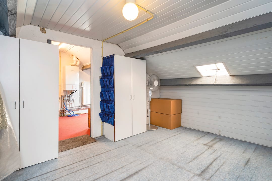 • Via een vaste (molenaars)trap is de 2de verdieping / zolder bereikbaar vanaf de overloop. Op het eerste gedeelte van de zolder hangt de HR combiketel en er is een kantelbaar dakraam met dubbelglas. Er is ook nog een 2e gedeelte op de zolder met ook hier veel bergruimte en een dakraam welk zorgt voor daglicht. Tevens is de gehele zolder een ideale plaats voor een 4e en 5e slaapkamer, of een werkkamer.
