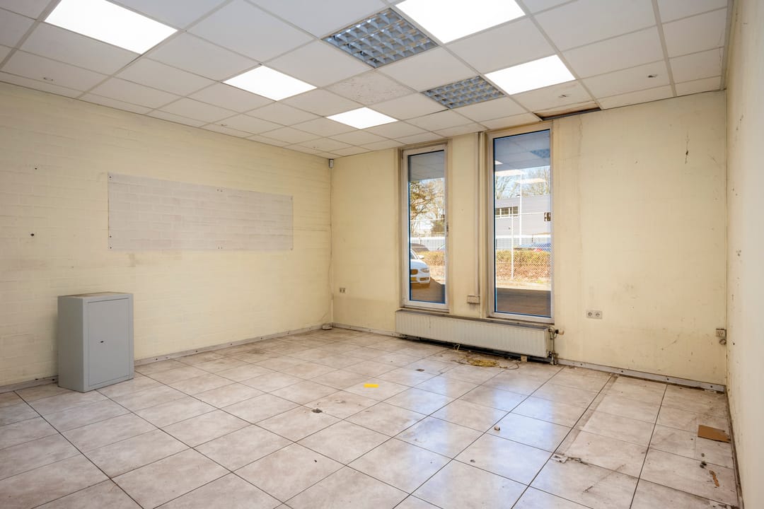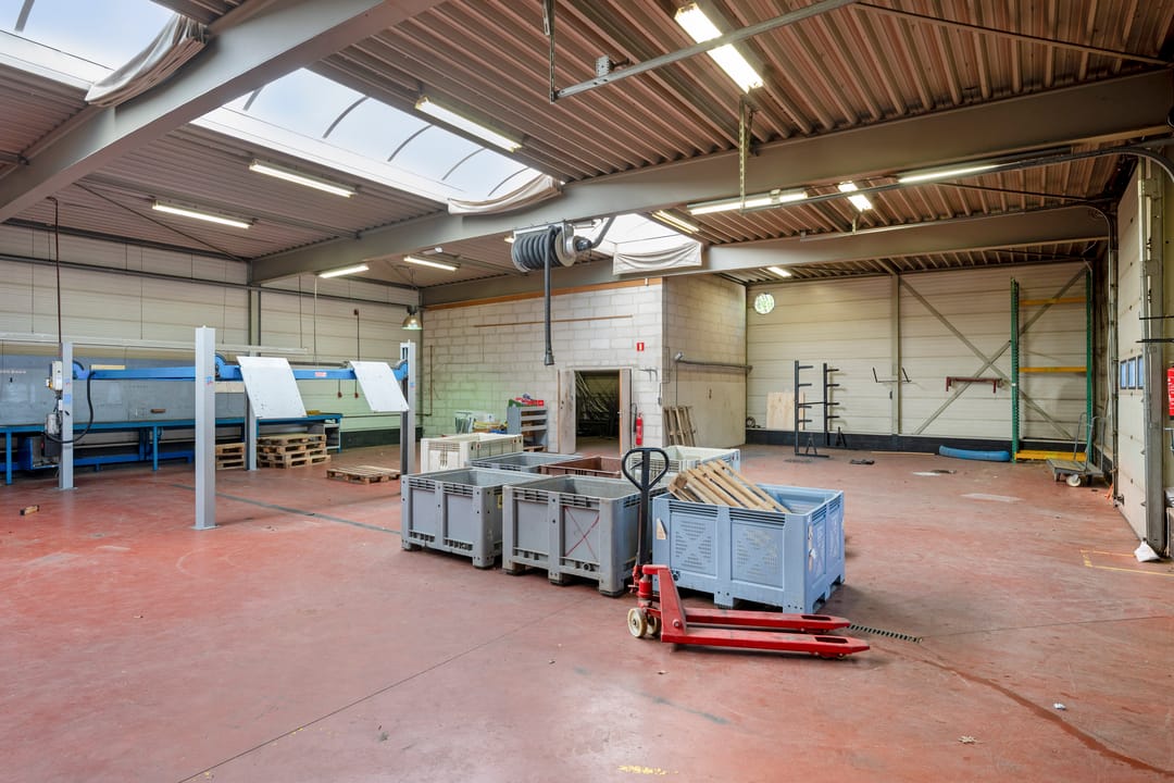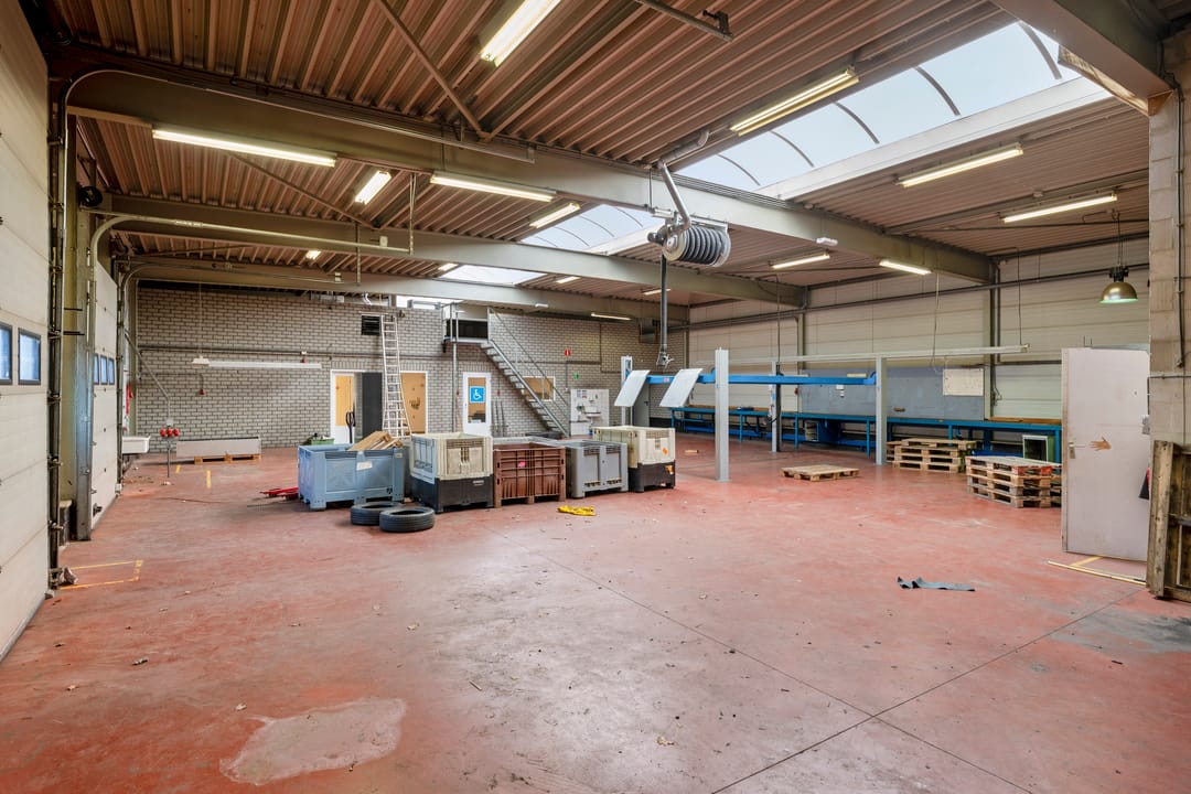 bedrijfsruimte (vrije hoogte: ca. 4 m) met verdiepingsvloer (ca. 134 m²) en kantoorruimte (ca. 111 m²). De loods beschikt over 2 elektrisch bedienbare overheadpoorten (beide zijn 3 meter breed, waarvan één 4 meter hoog is en de andere 3 meter hoog), lichtstraat en gasheater. De verdiepingsvloer is toegankelijk via de trap in de loods en is enkel t.b.v. opslag. Deze vloer beschikt over een hoogte oplopend van ca. 1 meter tot maximaal ca. 1,7 meter. Het kantoor is verdeeld in 3 aparte kantoorruimtes, een ruime entree en lunchruimte. Het object beschikt over een verhard en omheind buitenterrein van ca. 900 m². Dit is t.b.v. opslag of parkeerruimte. Daarnaast beschikt het pand over 49 zonnepanelen (16.000 kW) waarvan de opbrengst voor de huurder is.