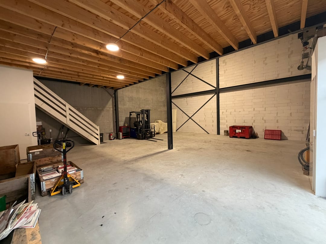 - Overheaddeuren, krachtstroom, betonvloer en toilet