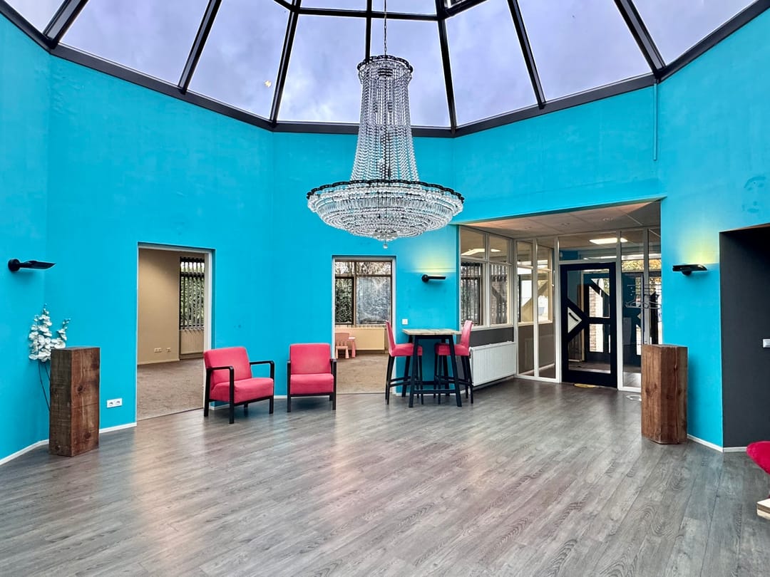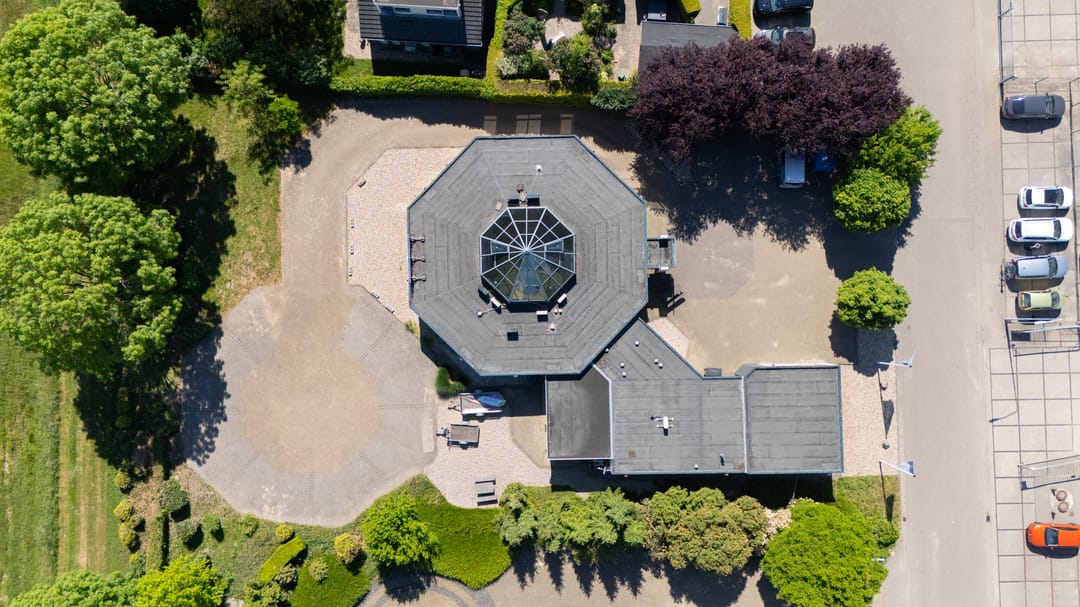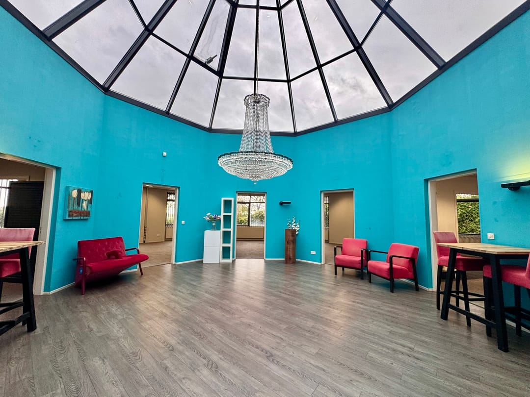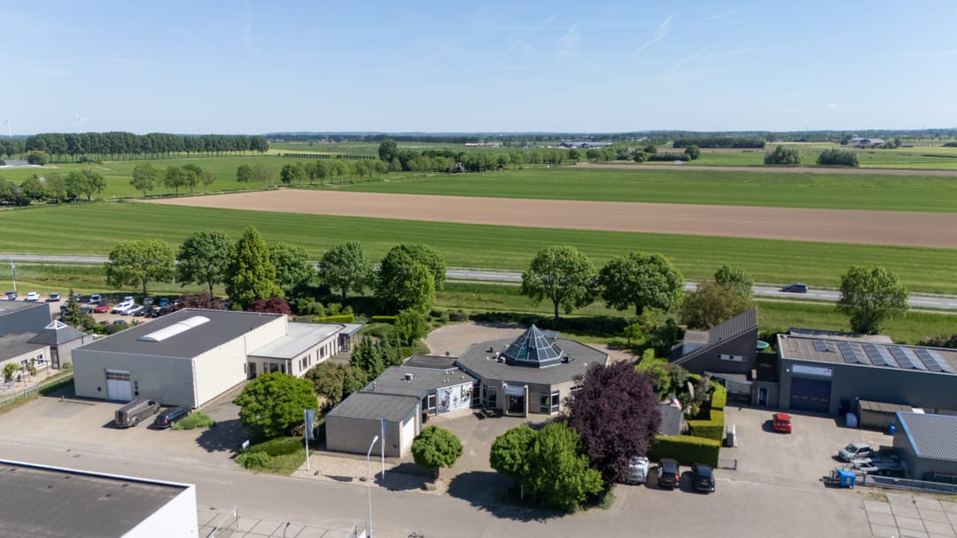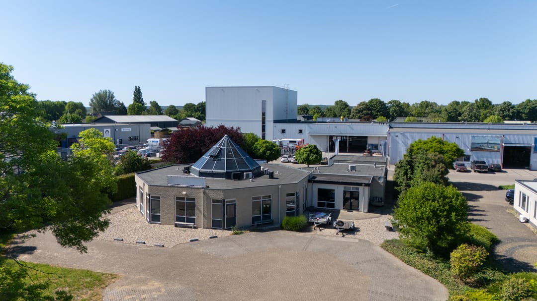 Wie regelmatig over de Rivierweg tussen de A12 en Doesburg rijdt, kent het pand vast wel door de karakteristieke achthoekig vorm en glazen tentdak. Dit vrijstaande pand is in 1995 gebouwd als kantoorlocatie, maar is feitelijk multifunctioneel. Het gebruik is sinds 2017 tot heden meer commercieel/industrieel geweest. De indeling is nauwelijks gewijzigd en kan ook eenvoudig weer aangepast worden ten behoeve van een volledige kantoorfunctie, maar ook in combinatie met (technische) groothandel, werkplaats, adviesbureau enz.