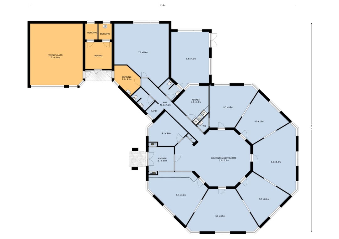 Totaal vloeroppervlak bedraagt ca. 430 m².