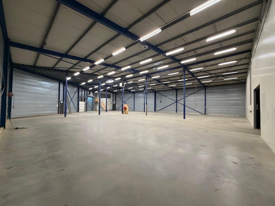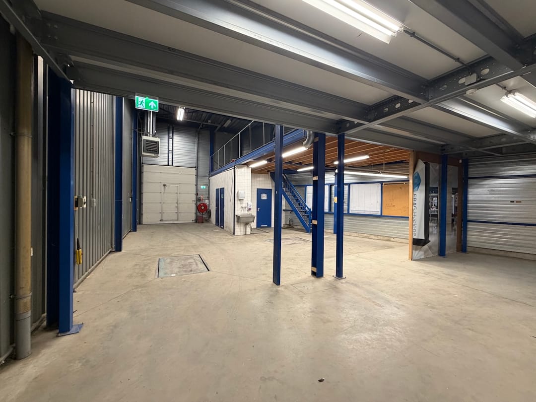 - Overheaddeuren, krachtstroom, betonvloer, heater, toilet, pantry en airconditioning