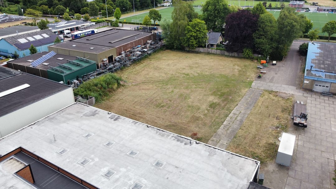 Achter het bedrijfsgebouw is een perceel bouwgrond/buitenterrein gelegen met ontwikkelmogelijheden. Voor dit terrein is reeds een