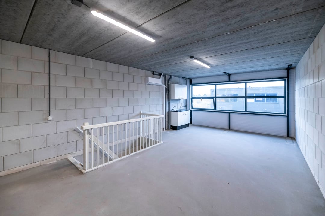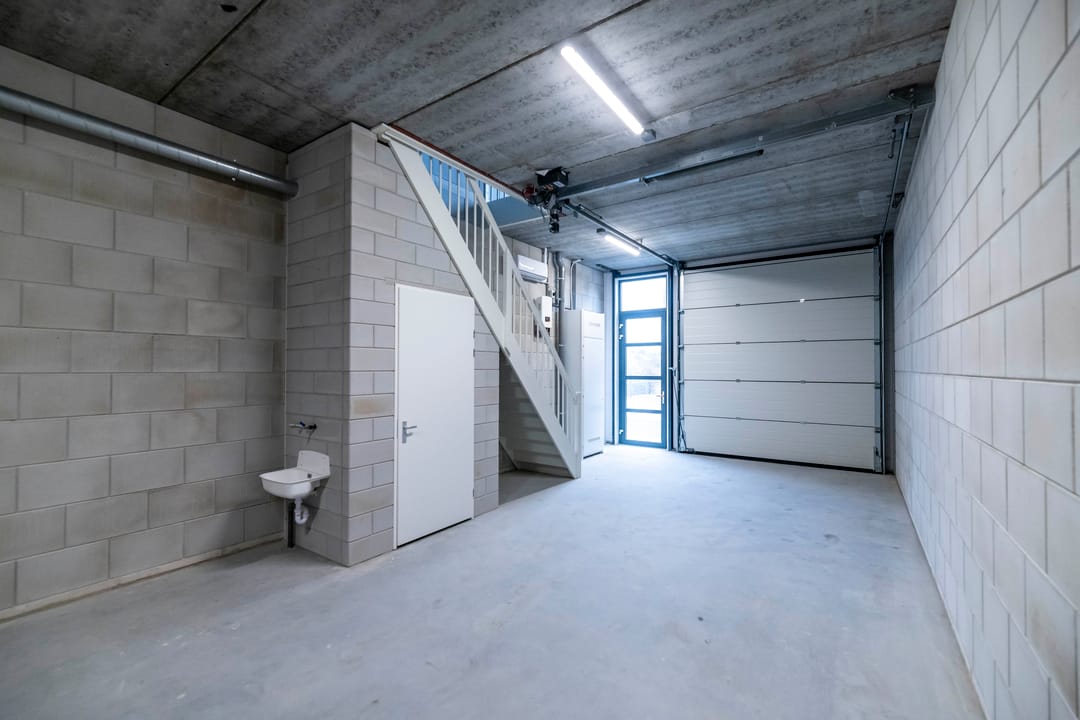 - Topkoeling, overheaddeuren, betonvloer, toilet, pantry en te openen ramen