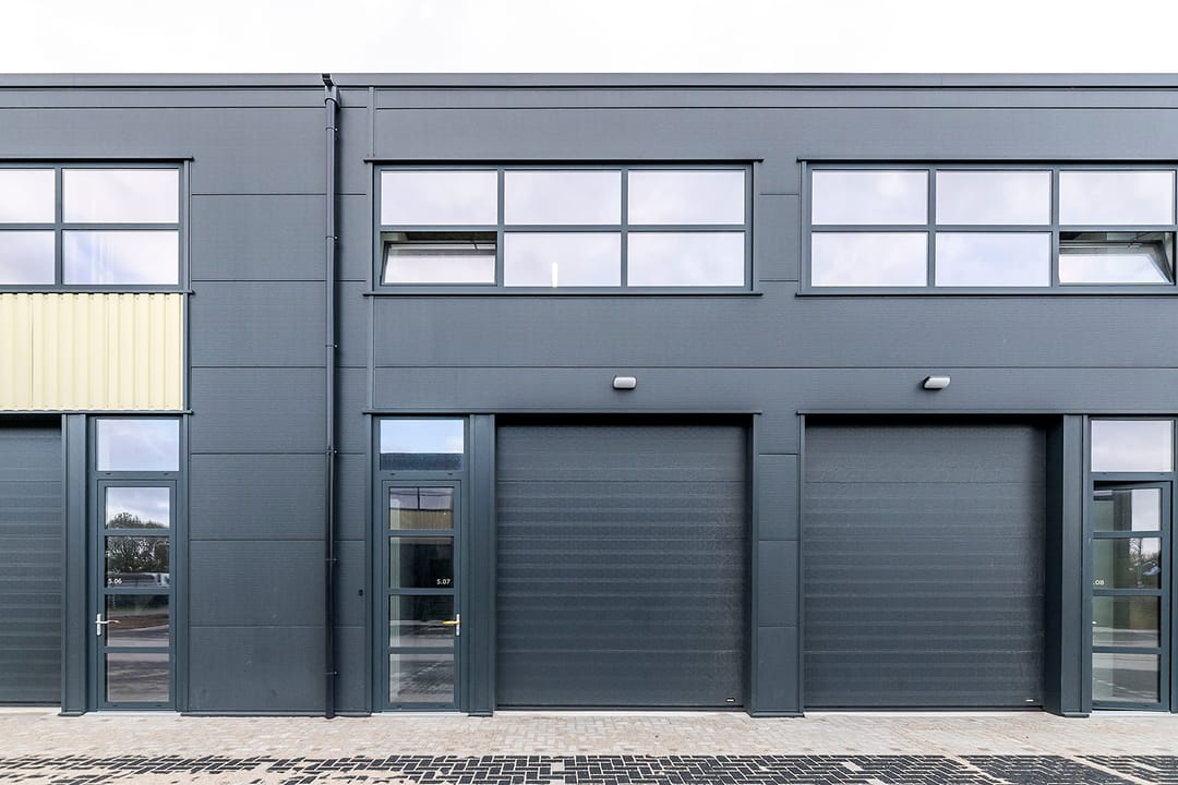- Overheaddeuren, betonvloer, toilet, pantry en te openen ramen