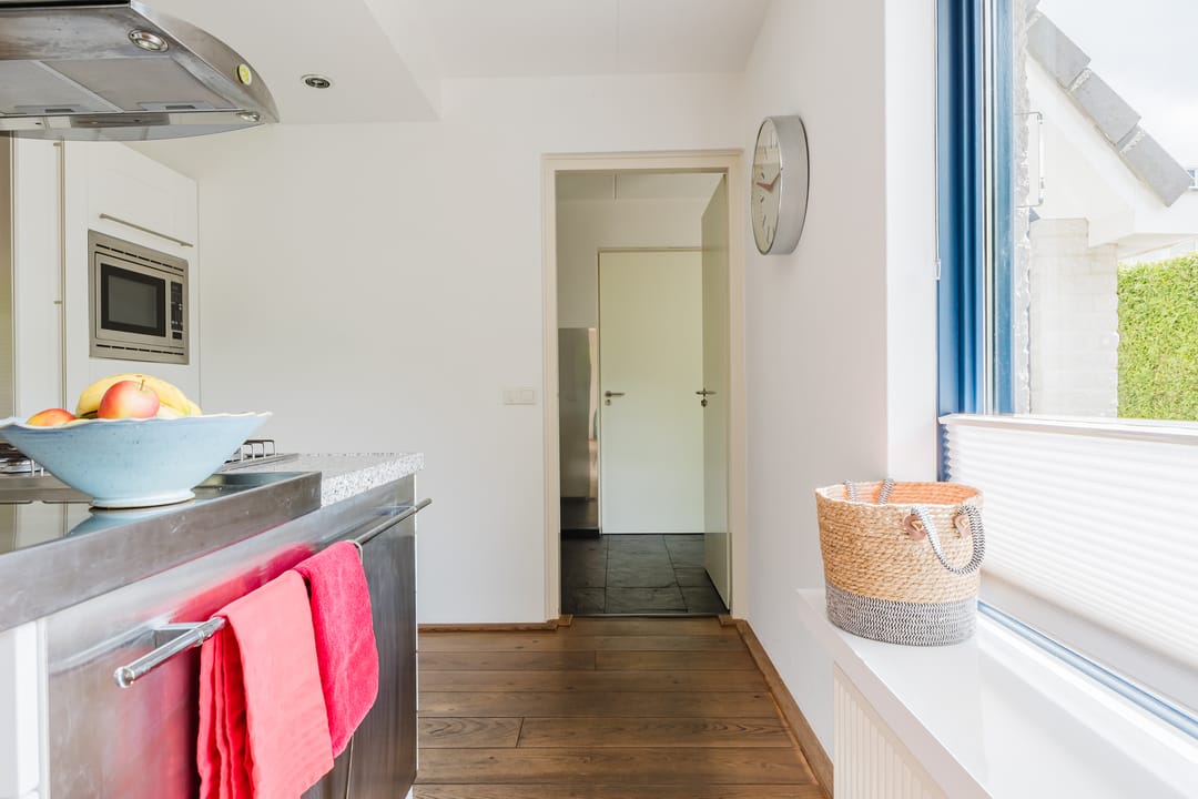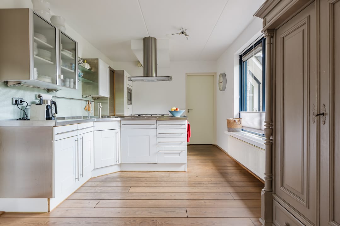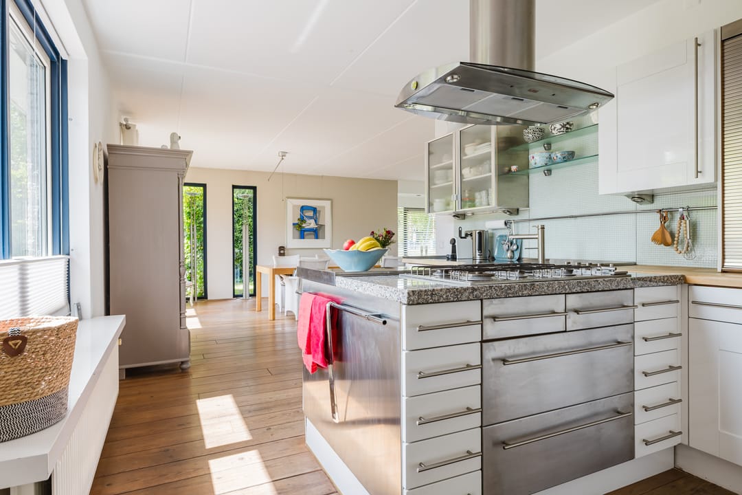 • Keuken met gaskookplaat, afzuigkap, combi oven, koelkast, vriezer en vaatwasser