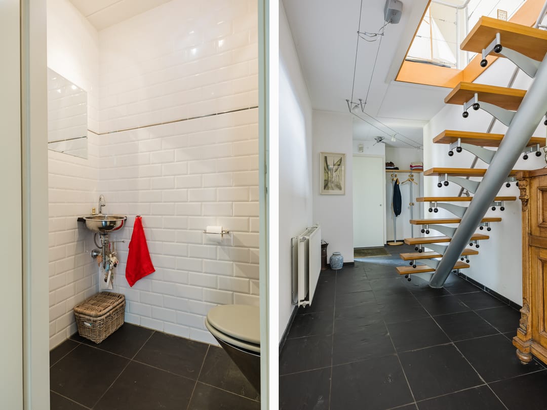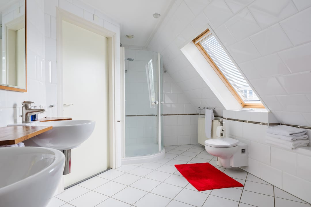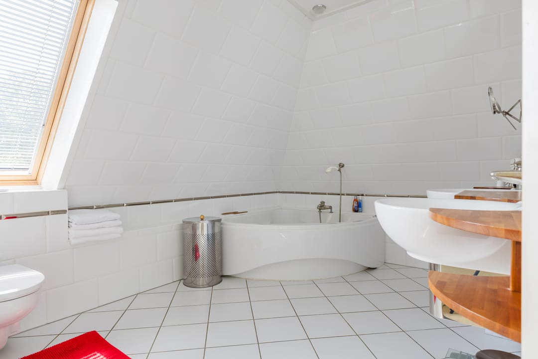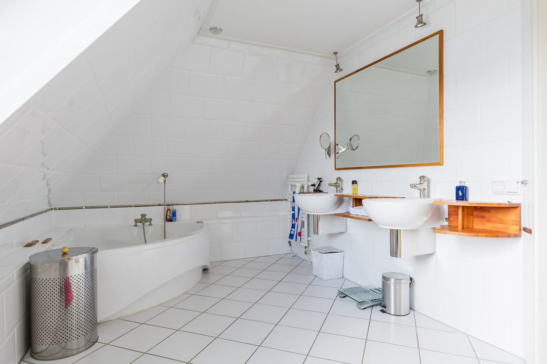 • Badkamer met dubbele wastafel, ligbad, douche en 2e toilet