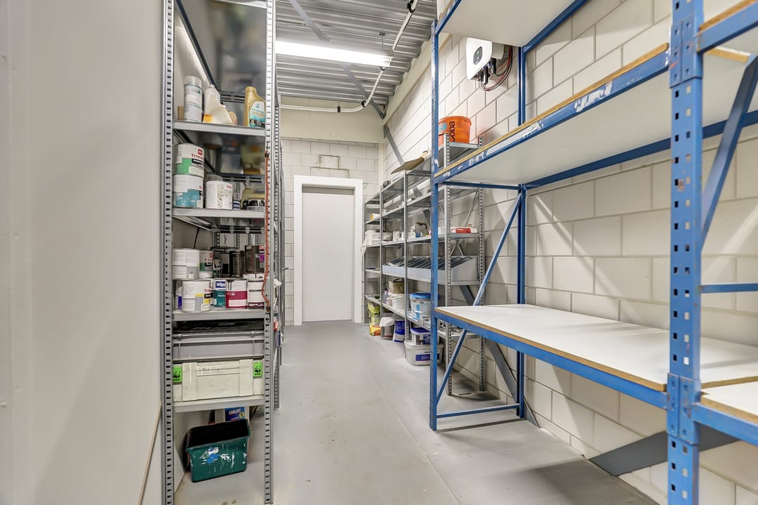 - Overheaddeuren, krachtstroom, betonvloer, toilet, pantry, airconditioning en te openen ramen
