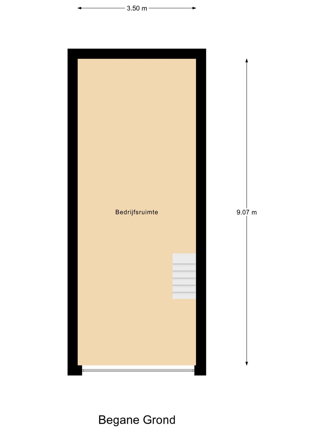 Begane grond: ca. 9,0 x 3,50 meter