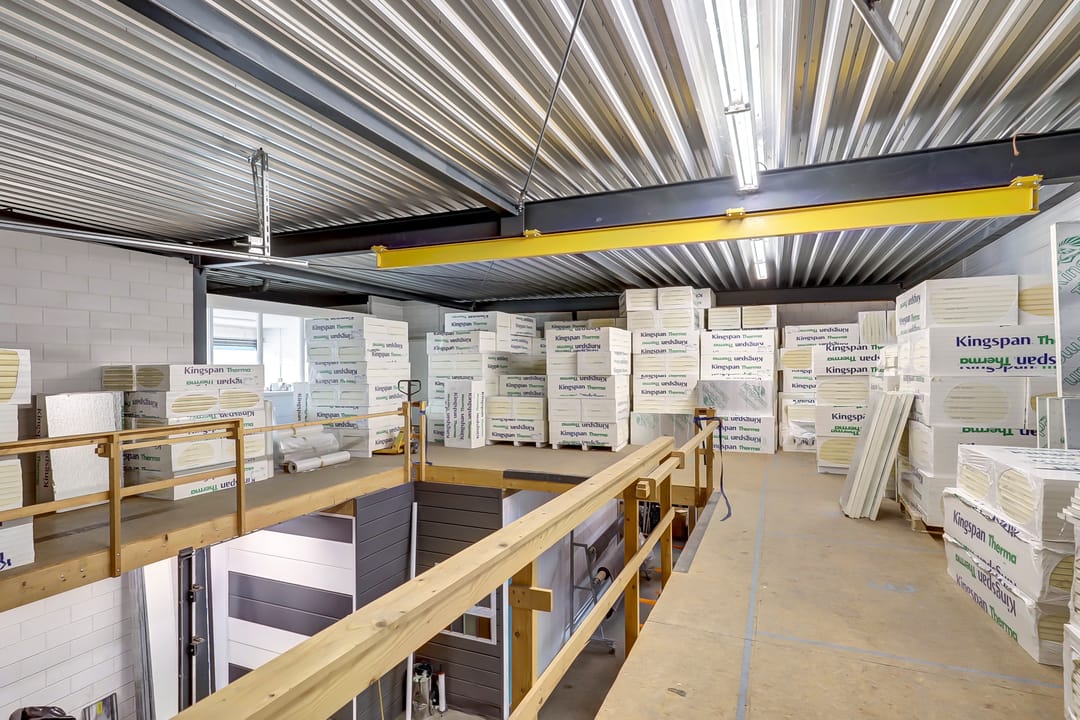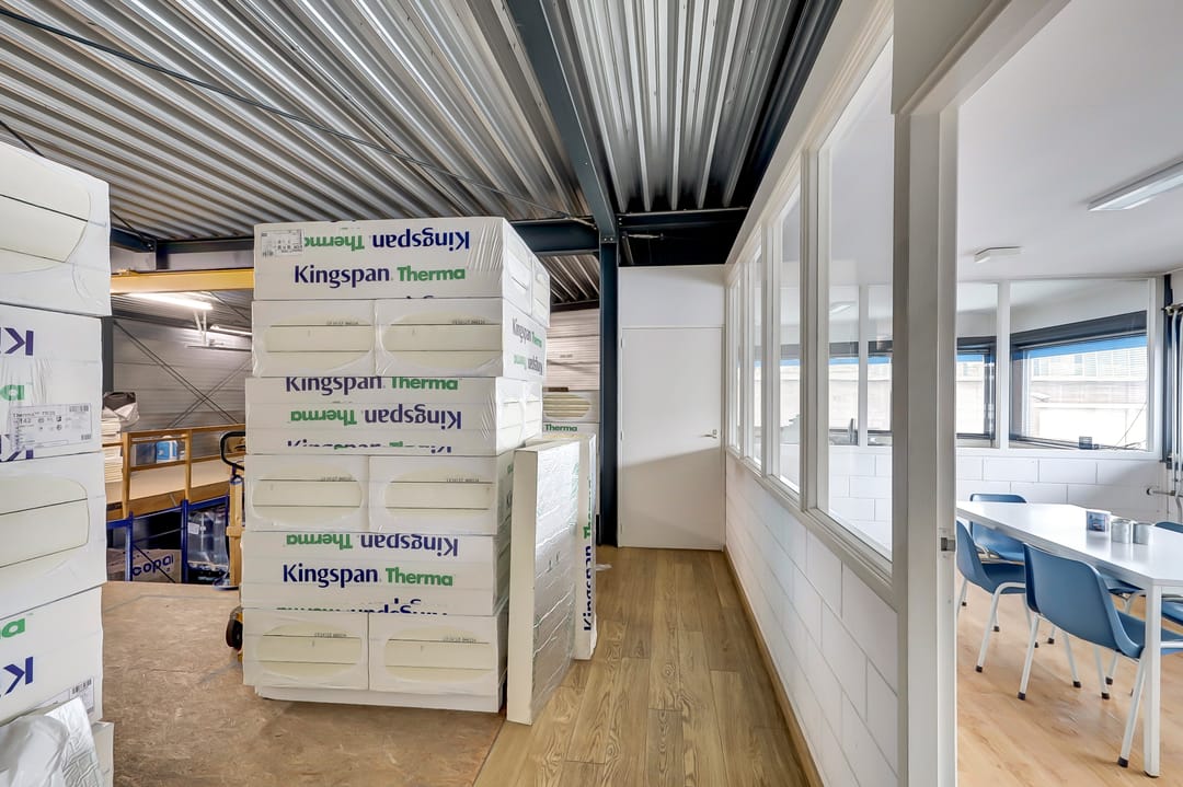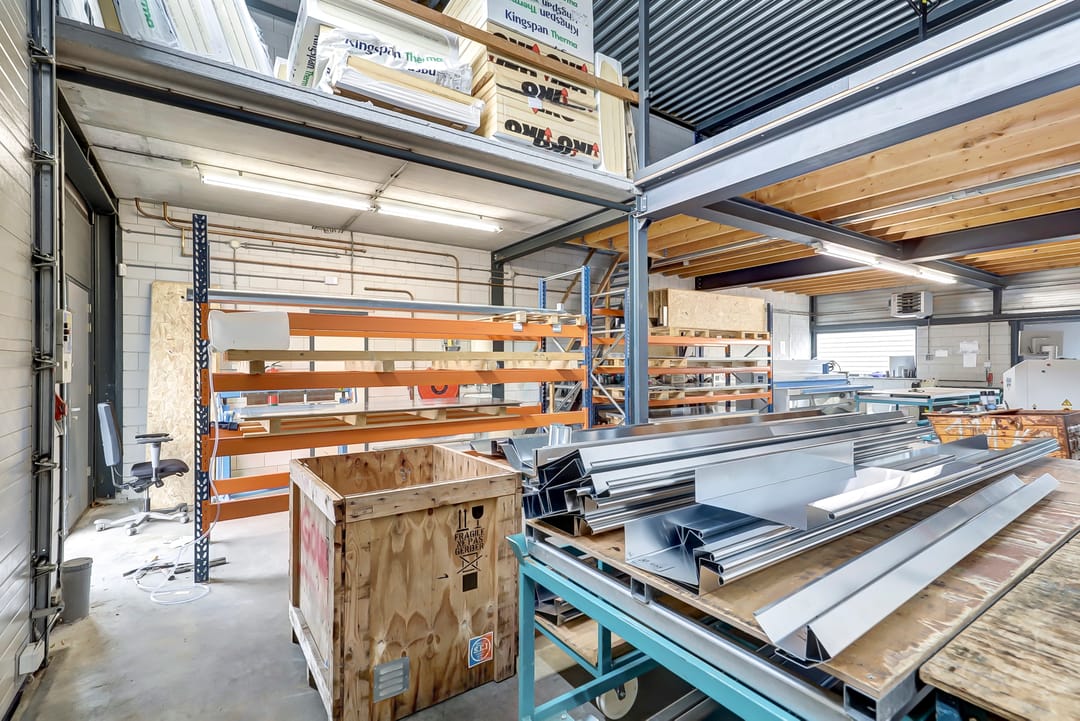 Deze verdieping bestaat grotendeels uit een ruime werkplaats van ca. 315m², verdeeld over meerdere functionele compartimenten. De werkruimte is voorzien van een slijtvaste betonvloer, geschikt voor zwaar gebruik, en strak afgewerkte wanden in een lichte kleurstelling, wat zorgt voor een verzorgde, overzichtelijke en professionele werkomgeving. Dankzij de hoge plafonds en open indeling beschikt u hier over uitstekende mogelijkheden voor opslag, logistiek of productiewerkzaamheden.