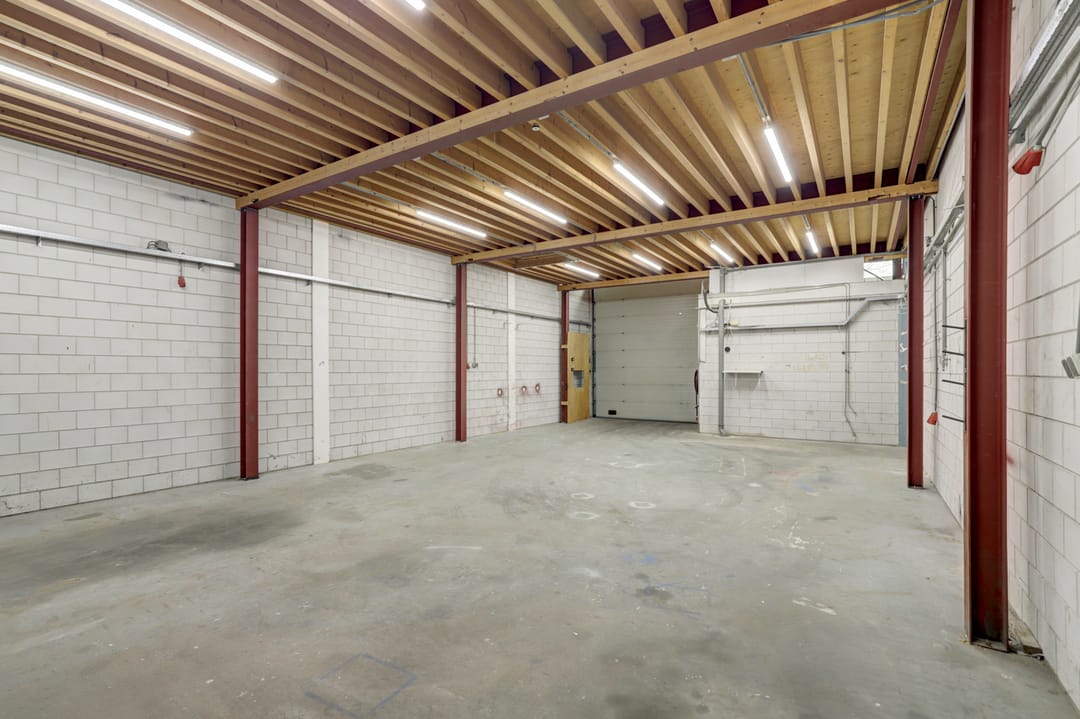 - Overheaddeuren, krachtstroom, betonvloer, toilet, pantry en te openen ramen