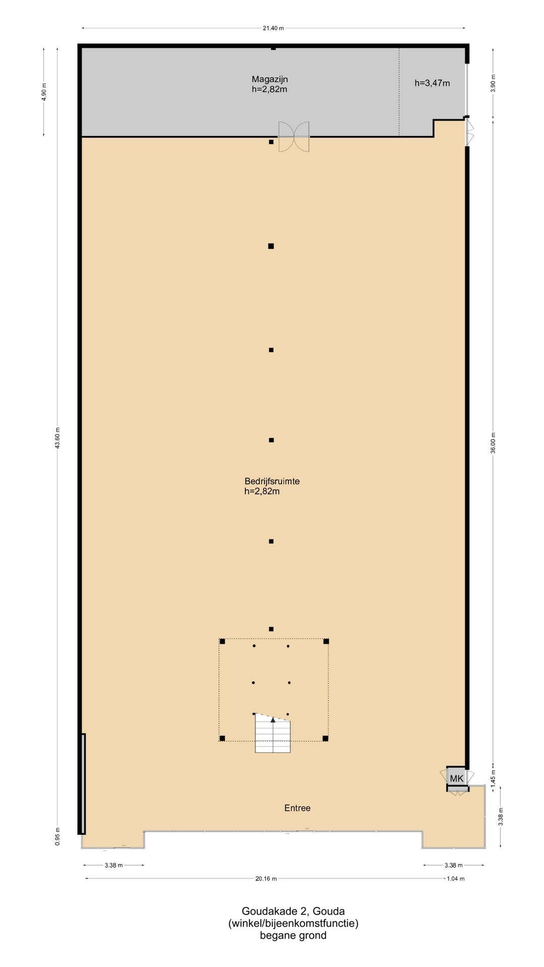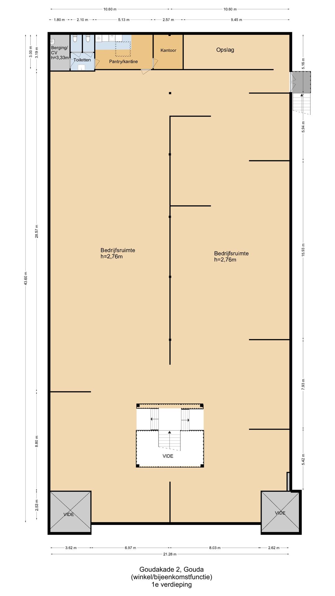 Aantrekkelijke bedrijfsruimte met multifunctionele bestemming aan de Goudkade 2 te Gouda. Het betreft een bedrijfsunit waarvan de totale oppervlakte ca. 1.842 m2 v.v.o. bedraagt. Het pand heeft een specifieke vorm van detailhandel, namelijk ‘perifeer 1’, maar ook bestemming ‘bedrijf tot en met categorie 3.2’. Het pand is dus voor meerdere doeleinden geschikt, van grootwinkelbedrijf tot timmerbedrijf. Dankzij de ligging op een goed bereikbaar bedrijventerrein zijn zowel klanten als leveranciers snel ter plaatse.