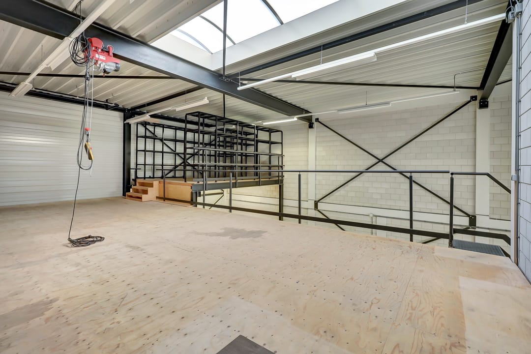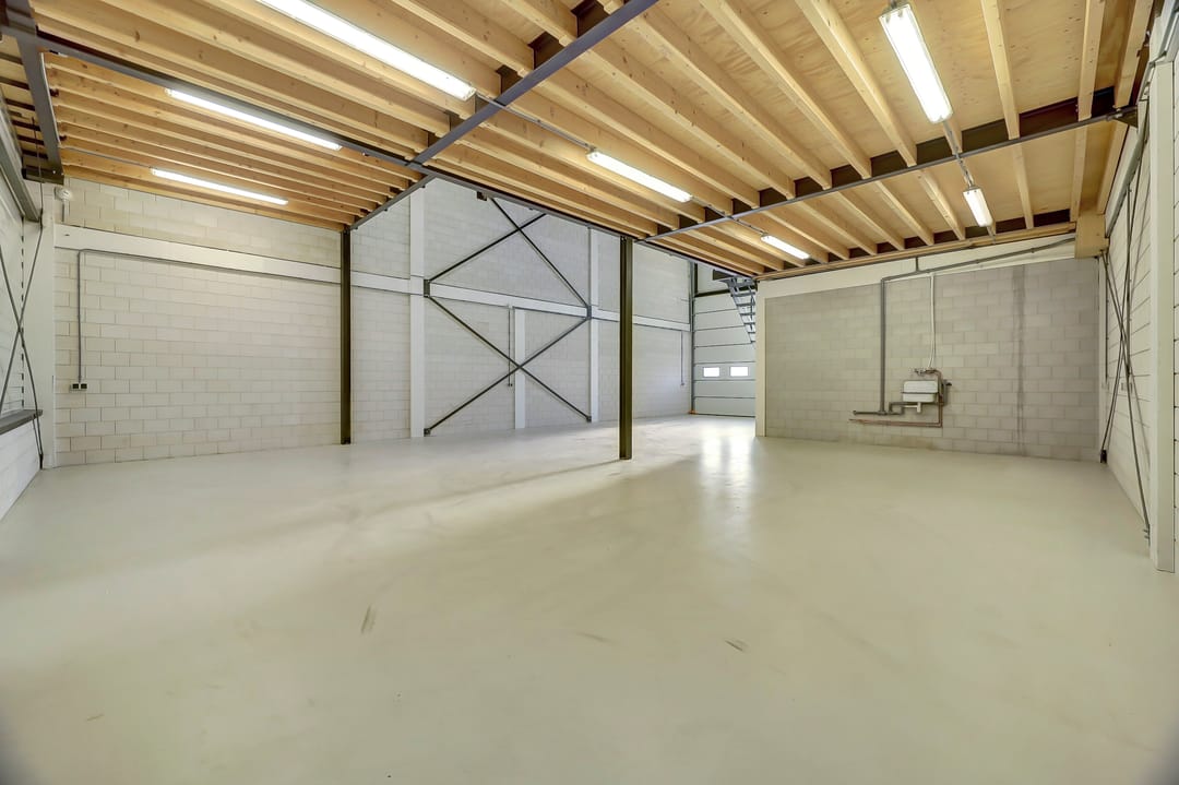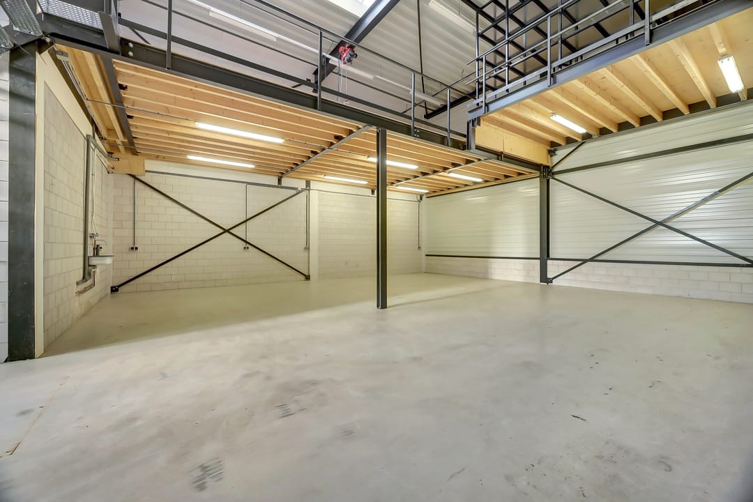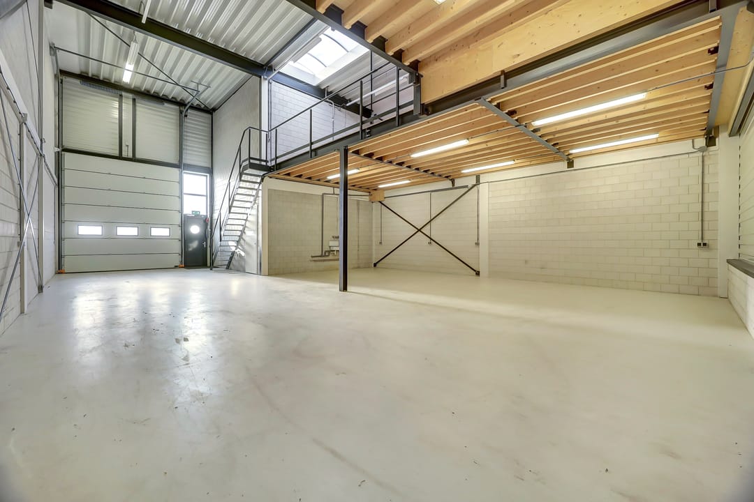 - Lichtstraten, overheaddeuren, betonvloer, toilet, pantry en te openen ramen