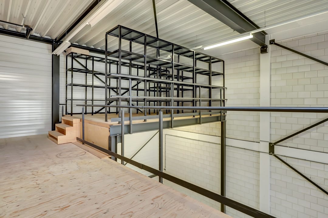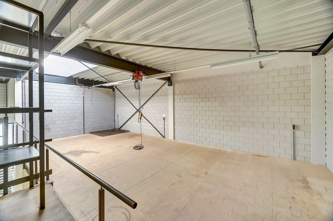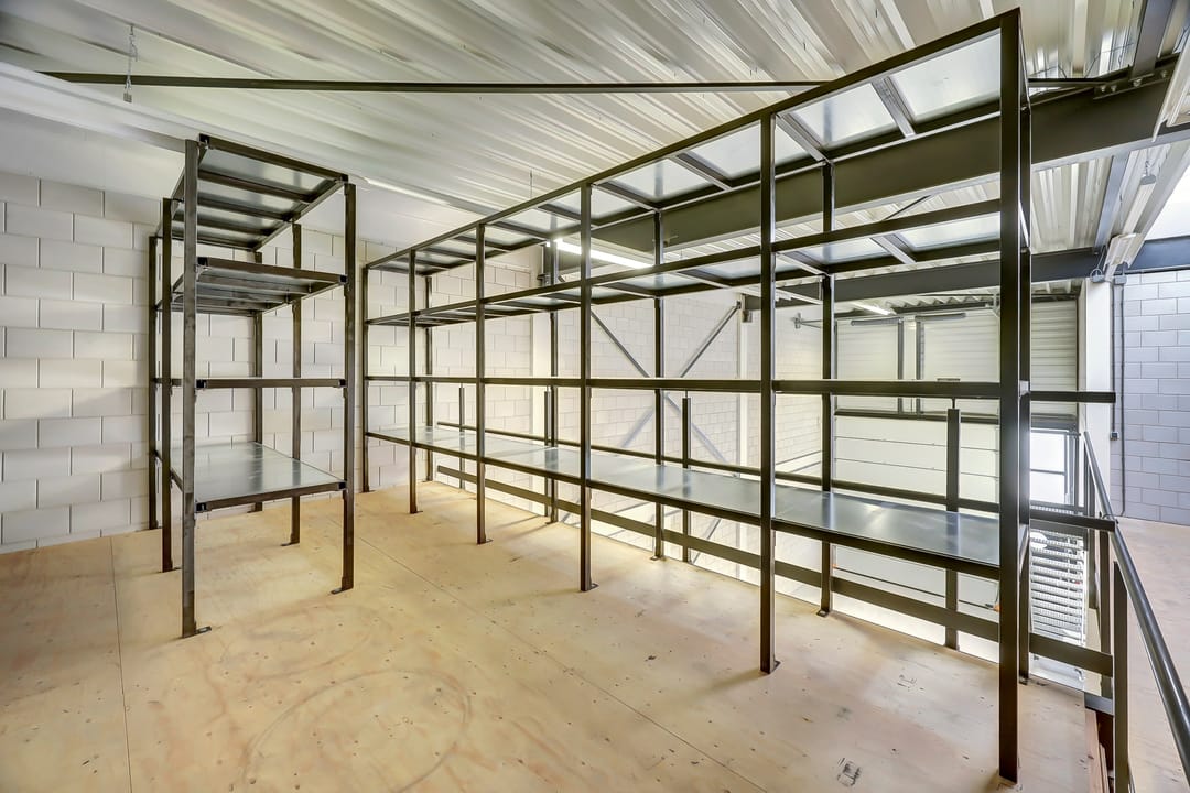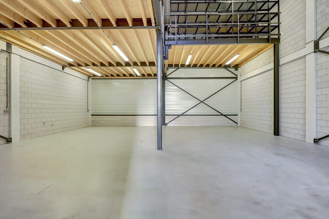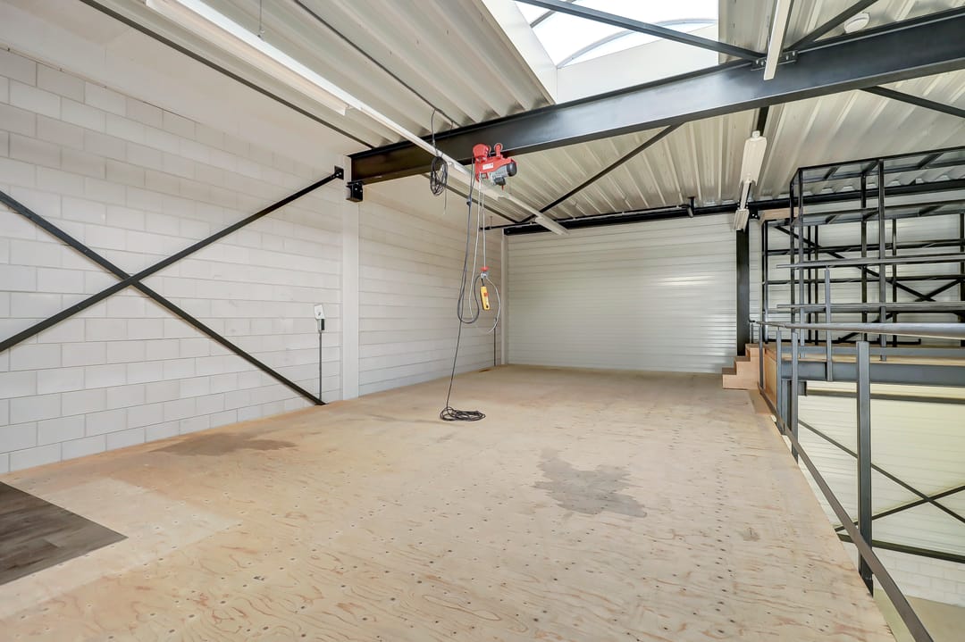 - Lichtstraten, overheaddeuren, betonvloer, toilet, pantry en te openen ramen