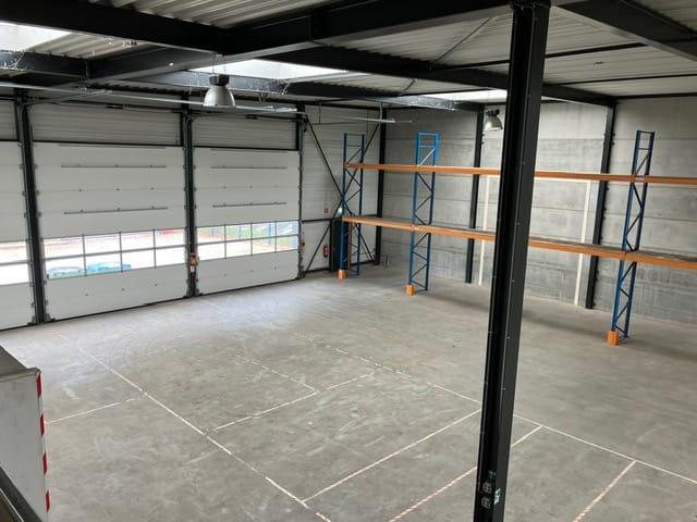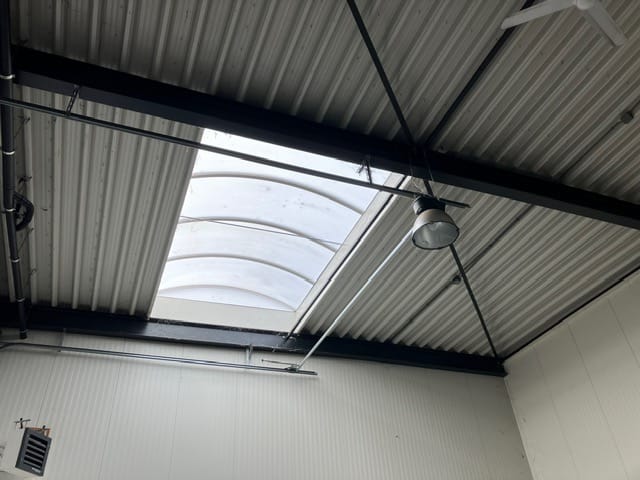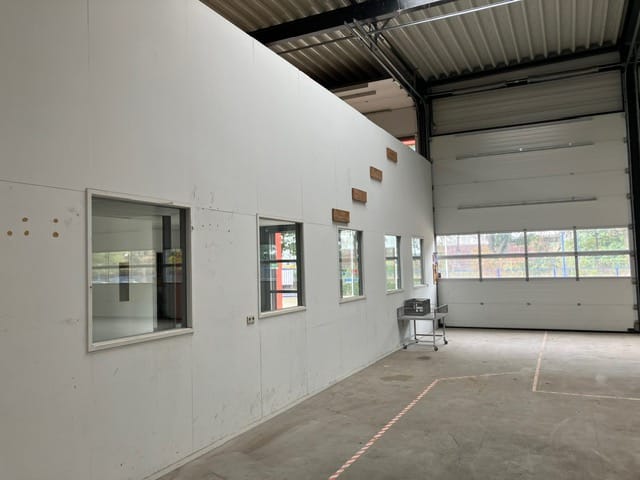 - Lichtstraten, overheaddeuren, krachtstroom, heater, toilet, pantry, inbouwarmaturen en te openen ramen