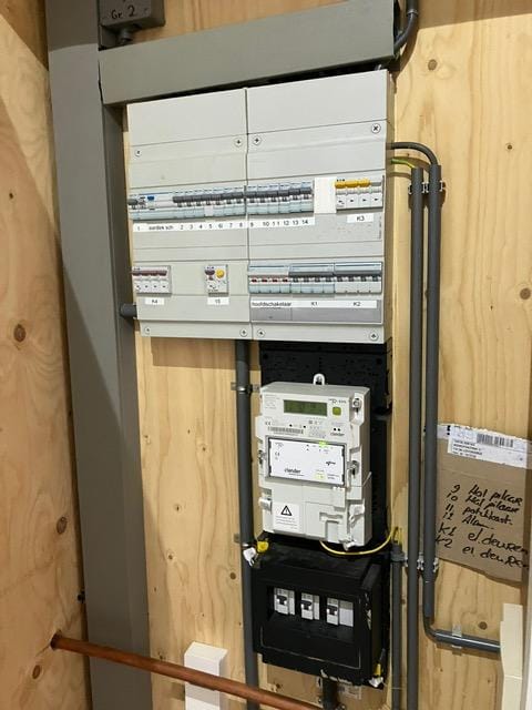 - Eigen nutsaansluitingen 3 x 40 ampere (max. 3 x 80 amp mogelijk);