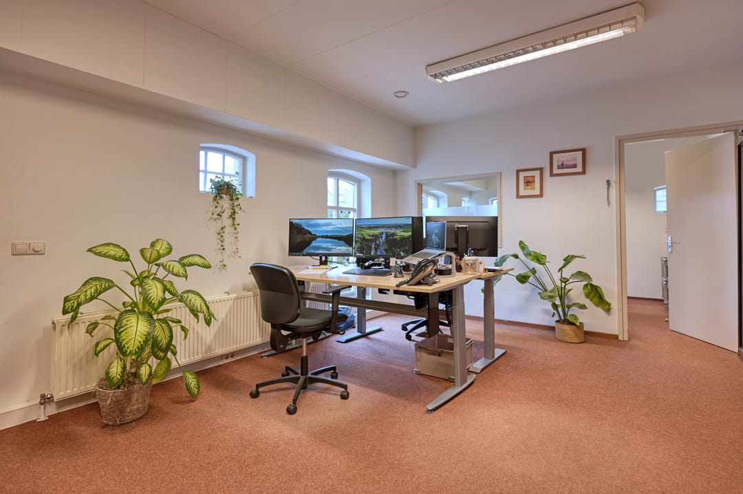 De lesruimte met kantoor heeft een eigen entree, vestibule en een grote multifunctionele ruimte met openslaande deuren. De keuken is voorzien van een keukenblok. Verder zijn er 2 toiletten, een ruime kantoorruimte en een doorloop naar een tweede kleiner kantoor. Een toilet en een grote praktijkruimte maken het kantoor compleet. Het kantoor heeft dus meerdere mogelijkheden voor verschillende bedrijfsactiviteiten, maar kan ook gebruikt worden voor inwoning, mantelzorgwoning, kangoeroewoning of gastenverblijf