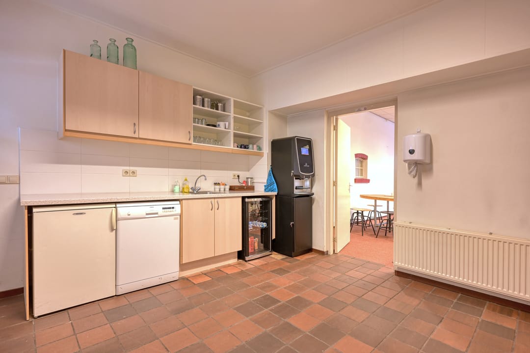 Vanuit de bijkeuken, met een zijentree, is er toegang tot de grote schuur/deel. Oorspronkelijk was ook de lesruimte/kantoor vanuit deze bijkeuken bereikbaar, maar op de plek van deze doorgang zijn momenteel 2 toiletten gemaakt.
