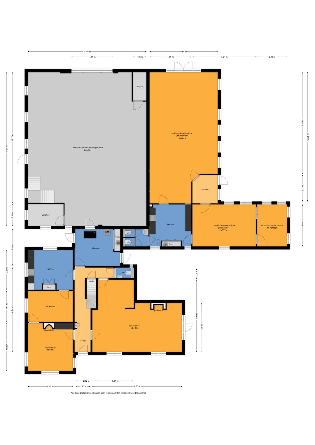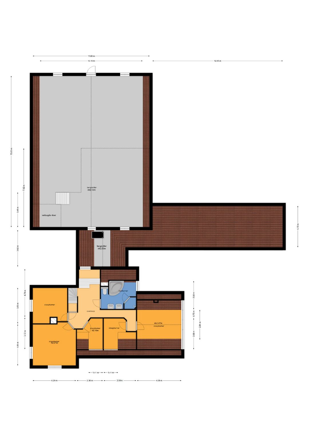 - Les- en kantoorruimte 140 m2 en garage/klusruimte/opslag 180 m2 (huidige bestemming).